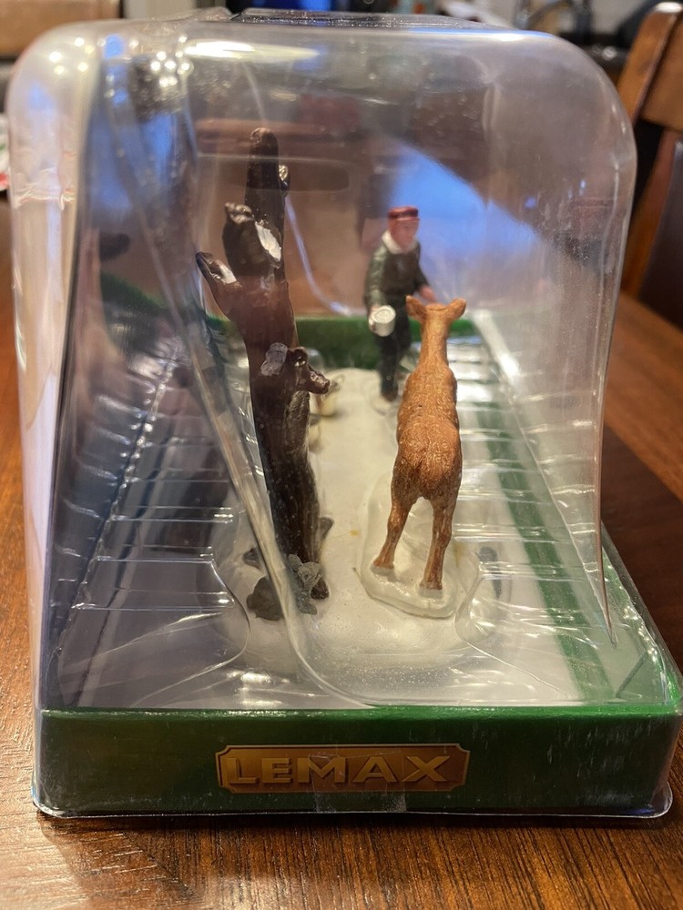 The 2017 LEMAX Table Accent SHARING PARTAGE #73301 is a medium-sized ceramic and porcelain Christmas village decoration with an asymmetrical shape. This multicolor piece features a village theme and is designed to be a festive addition to any room during the Christmas season. It comes in its original box and is part of the seasonal collection by LEMAX. The item measures 4 1/2 inches in length, 4 inches in height, and 2 1/2 inches in width, making it a charming and detailed collectible for holiday displays. New in package. Ships only to the lower 48 u.s. states. Must be paid for within 3 days of purchase. Thanks for looking
