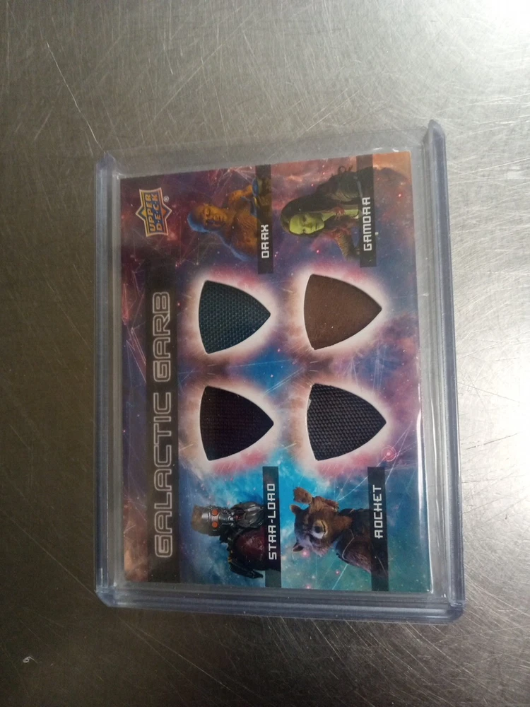 This is the same lot for the exact item shown in photos for personal grading. Please! Let me know if you have any questions or want more photos. In this lot- 2017 Marvel Guardians of the Galaxy - Galactic Garb QM-5 -- VERY RARE! Features Costume Patches from: Drax Starlord Gamora Rocket Raccoon High rated eBay seller, I take pride in safety shipping through USPS.