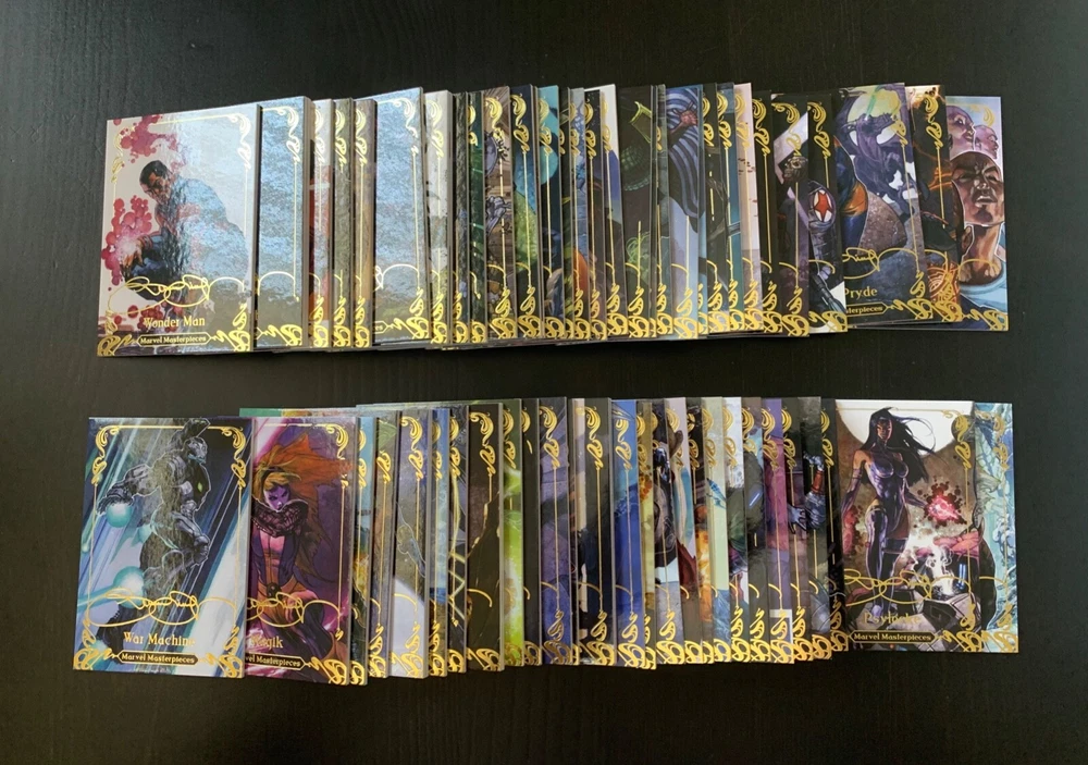 CLICK THE DROP DOWN BOX TO VIEW THE CARDS CURRENTLY IN STOCK. SELECT THE CARD YOU ARE INTERESTED IN PURCHASING. UPON CLICK THE CHARACTER THE INDIVIDUAL PRICE WILL APPEAR 2018 MARVEL MASTERPIECES GOLD SIGNATURE STAMP (ARTIST SIMONE BIANCHI) CARDS (1 - 81) TIER 1 (1-36) TIER 2 (37-63) TIER 3 (64-81) TIER 4 (82-90) MAJORITY OF CARDS ARE IN GREAT ( NEAR MINT / MINT ) CONDITION. ALL CARDS WILL BE IN NEAR MINT CONDITION OR BETTER. NO CREASES, BENDS, OR MAJOR IMPERFECTIONS. ALL MY ITEMS COME FROM A SMOKE-FREE HOUSE. SHIPMENT WILL BE SENT IN 3 BUSINESS DAYS OF PAYMENT. I WILL SHIP CARDS IN THE GREATEST OF CARE. I DO OFFER COMBINE SHIPPING RATES. INTERNATIONAL BUYERS MAY HAVE TO PAY MORE FOR SHIPPING. ** INTERNATIONAL BUYERS MAY HAVE TO PAY MORE FOR SHIPPING. PURCHASE OF A COMPLETE SET WILL NEED TO PURCHASE FIRST CLASS PACKAGE SHIPPING. FEEL FREE TO MESSAGE ME WITH ANY QUESTIONS. THANKS FOR LOOKING AND GOOD LUCK.