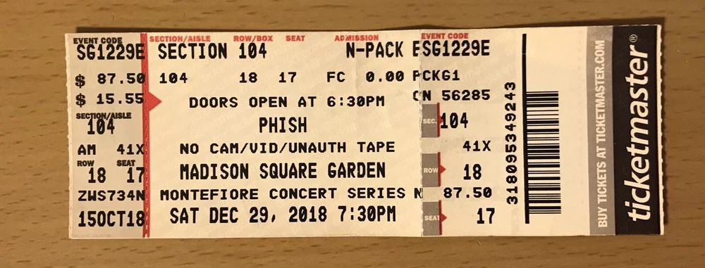 2018 PHISH 12/29 MADISON SQUARE GARDEN NEW YORK CITY CONCERT TICKET STUB TREY 17