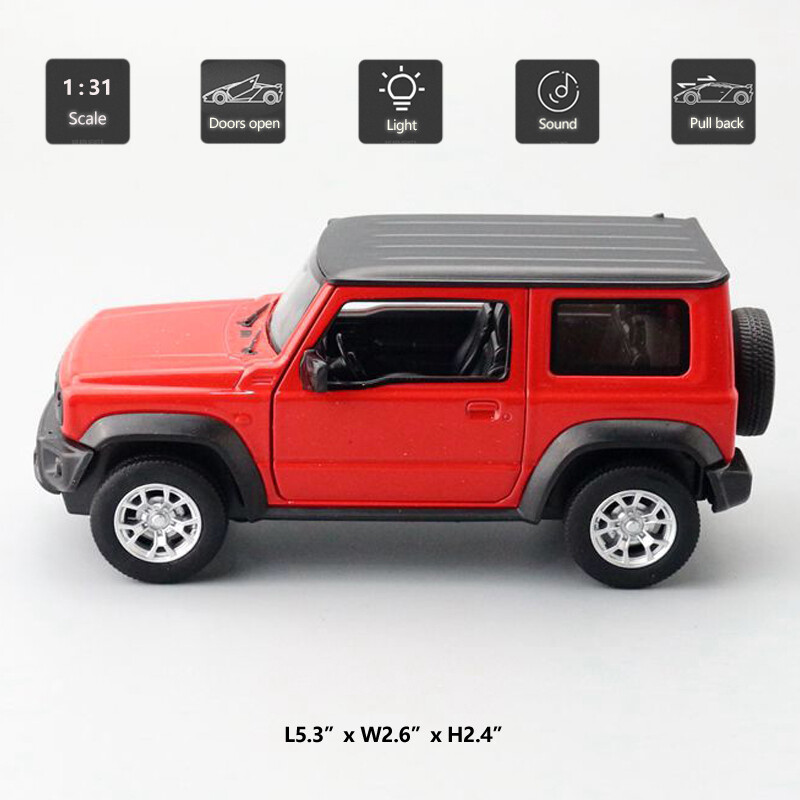 1/31 Scale Suzuki Jimny 2018 Model Car Diecast Vehicle Toys for Kids Pull Back Item Type Diecast & Toy Vehicles Scale 1:31 Material Diecast and ABS Color Red and green Dimension About L5.3" x W2.6" x H2.4" (L13.5 x W6.5 x H6.0 cm) Vehicle Type SUV Function *Pull back *Press the car or open the door, it will make sound and light *Two doors can be open Packing Packed in original color box, in excellent condition Power 3 x AG13/LR44 button cell, power is just for light and sound Tips *Great choice of gift for kids, especially for Birthday, Christmas and New Year Gift *Great item for collector, business gift, home decoration, office decoration, display Warning Don't put in mouth/Keep Away from Fire/Not for Children under 3 Years Notice Due to manual measurement, please allow a little error Package include 1 x 1:31 Scale Suzuki Jimny Model Car (The Batteries NOT Included) Payment Delivery details Terms of sales Payment We accept paypal only. Delivery details We ship orders within 24 hours upon receipt of payment. Terms of sales We provide great products and service. If you have any problems with the order,please do contact us before leaving negative feedback and opening case on eBay.