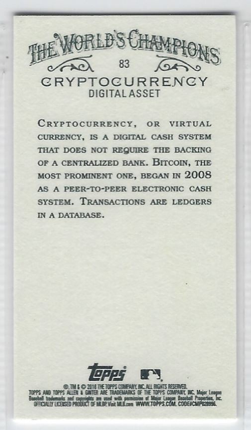 About Me Other Listings Feedback Add to Favorites Contact Me eBay Store TDDI Cards 2018 Topps Allen & Ginter Mini Cryptocurrency #83 No stock photo / These are real scans or pictures Details Description: Cryptocurrency Category: Baseball Year: 2018 Product: Topps Allen & Ginter Mini Card Number: 83 Dimensions: 2¾" x 1½" SKU: BL BBi0002 R01 G (24) Shipping MULTI BUY DISCOUNT For all cards priced at $4.00CAD or below, there is a multi buy discount policy. Buy 5 or more and get 10% off Buy 10 or more and get 20% off Buy 20 or more and get 30% off Buy 30 or more and get 35% off For this discount to apply, you must add the cards to the shopping cart and checkout for all of them on one single purchase. I will then send a partial refund equal to the discount amount after purchase. The reason that this isn’t automatic is that eBay’s Canadian storefront does not allow automatic multi-buy discounts at the cart level. So it has to be adjusted manually. The flat shipping policy below still applies to this! If there’s any questions, I’m happy to answer them before you make the purchase. Feel free to drop a line anytime! SAVE ON SHIPPING Canada Shipping Shipping cost = $2.35 Each additional card is $0.15. USA Shipping Shipping = $2.95 Each additional card is $0.15 Listing By Kronocard trading cards software v2.8.4.8