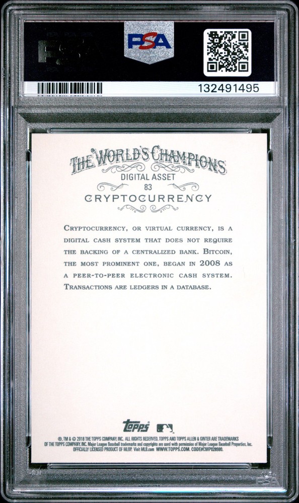 2018 Topps Allen & Ginter Silver Glossy #83 Cryptocurrency PSA This is a scan of the actual card you will receive. The only exception would be a few listings in which multiple quantities are listed Economy Shipping With Tracking (Plain White Envelope through eBay) For Cards $20 and Below USPS First Class Shipping (In a Bubble Mailer) For Cards Over $20 Card Ships in a Toploader or Cardsaver with Penny Sleeve Your feedback is important so please contact me with any questions about your purchase. Please send all offers through the Best Offer feature provided Happy Hunting! Collect What You Love! Please check out our other listings for more great cards.