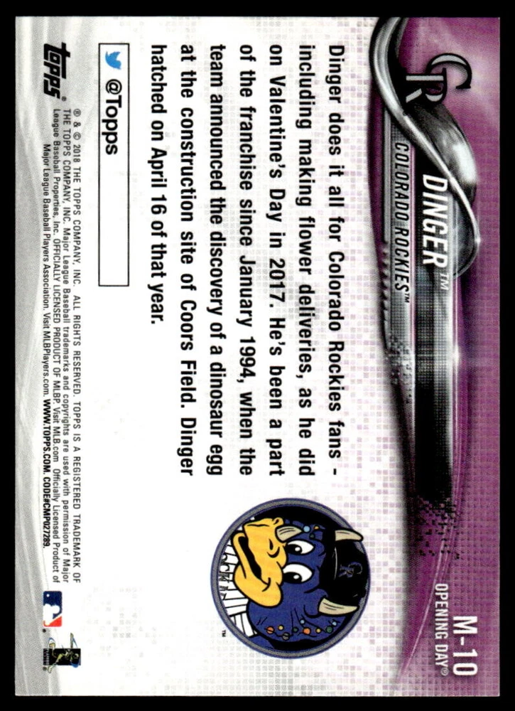 2018 Topps Opening Day Dinger Mascots #M10 Rockies