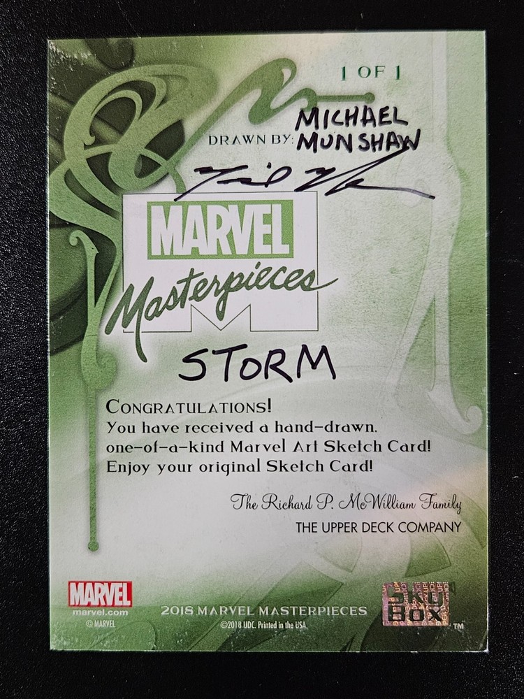 Sketch Card by Michael Munshaw The 1/1 sketch card(s) in this auction is for a single card, multiple cards in a puzzle, dual or booklet sketch with one or more hand-drawn images. The actual card you will receive is pictured in the auction. Based on our research this card was a licensed release in the 2018 Upper Deck Marvel Masterpieces set (inserted in boxes and packs). Please do your own research to confirm our findings and please reach out to us with any questions before you make a purchase. Shipping Policy: To receive combined shipping please wait until all bids/offers are executed. Please proceed to pay invoice with auto-calculated combined shipping. If you experience any issues, please contact us and someone from our staff will send an updated invoice. We take precautionary measures to protect all items that we ship and to do our best to limit the chances of items being damaged in transport. Payment Terms : Payment is due in four days. If payment is not received, and you have not reached out asking to extend payment, we will cancel the sale and relist the item. Questions : If you have any questions or experience any issues, please reach out to us at any time. It's important that we exceed your expectations from the start of the order through the delivery of your product. Thank you for your business!