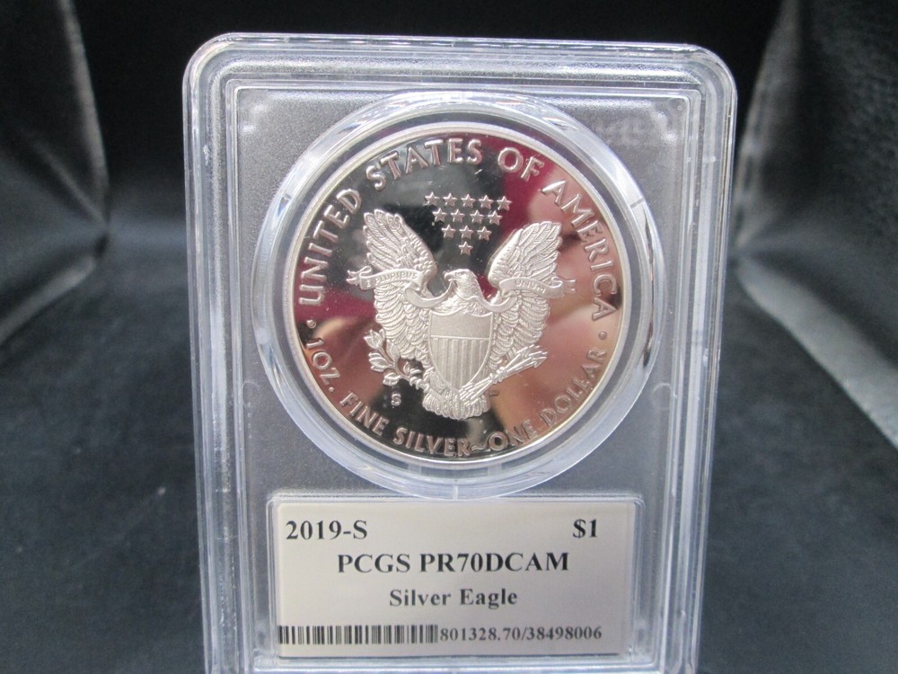 2019 S American Eagle Proof .999 Fine Silver 1oz Dollar PCGS PR70 DCAM Please look at all photo's for actual items and condition UNITED STATES SHIPPING We offer combined shipping on multiple orders. In this event, please wait to receive a combined invoice before completing payment. You may notify us via eBay message of your continued bidding to help us best assist you. We give up to 10 Days from first items ending date for combined orders, or an unpaid case will open. Once a payment is made no other orders can be combined with that order. We use the USPS shipping service through EBay so you can track your package right online. You will receive your tracking number via messages. We do offer LOCAL PICK UP INTERNATIONAL SHIPPING Please review the eBay Global Shipping Program before bidding. These orders will be subject to domestic shipping charges along with any taxes, tariffs or customs charges from the destination country. If you are not 100% satisfied with your item you may return within 30days of received date. We do our best to present accurate information about every item we sell. If you have any questions please feel free to ask through message. WE A PPRECIATE YOUR BUSINESS AND THANK YOU FOR VIEWING OUR LISTING!