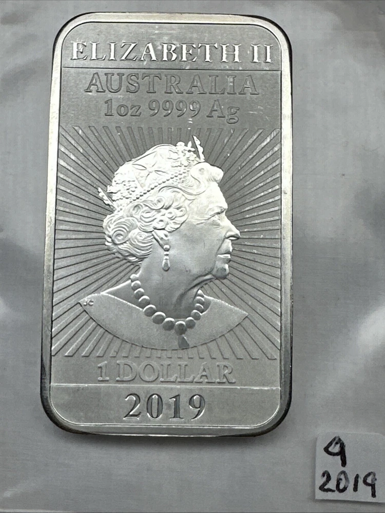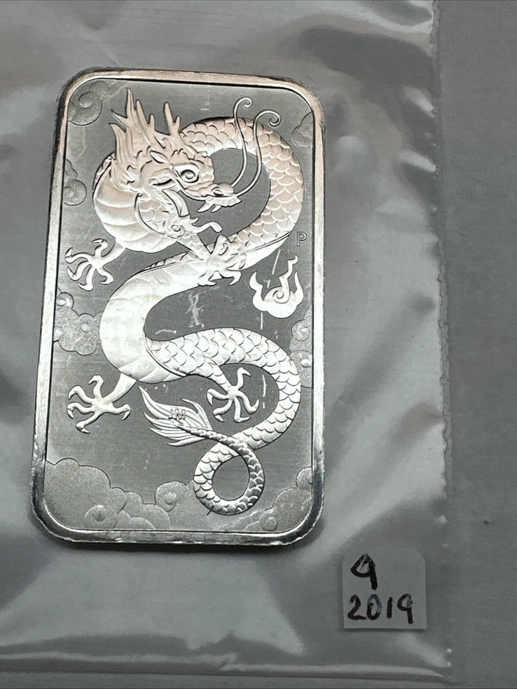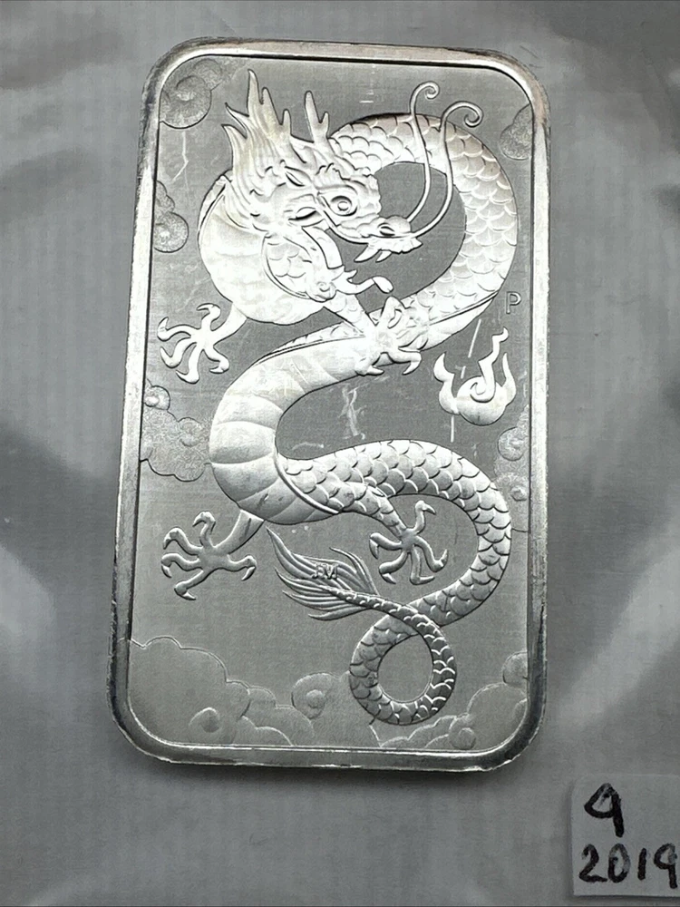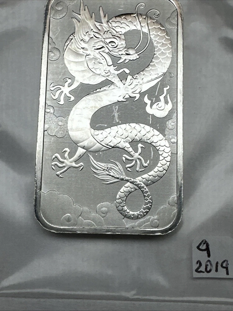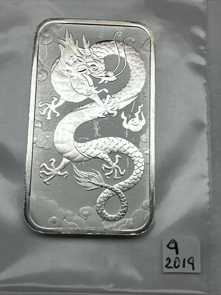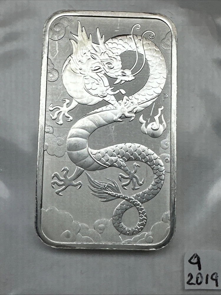 2019 Australia Dragon bar 1 oz Silver 0.9999 $1 Perth Mint Bar