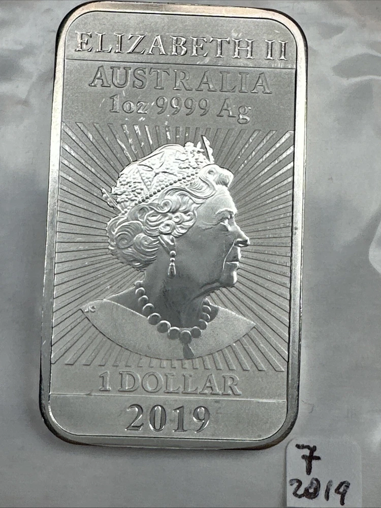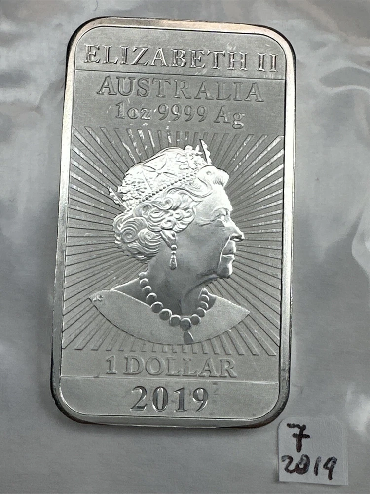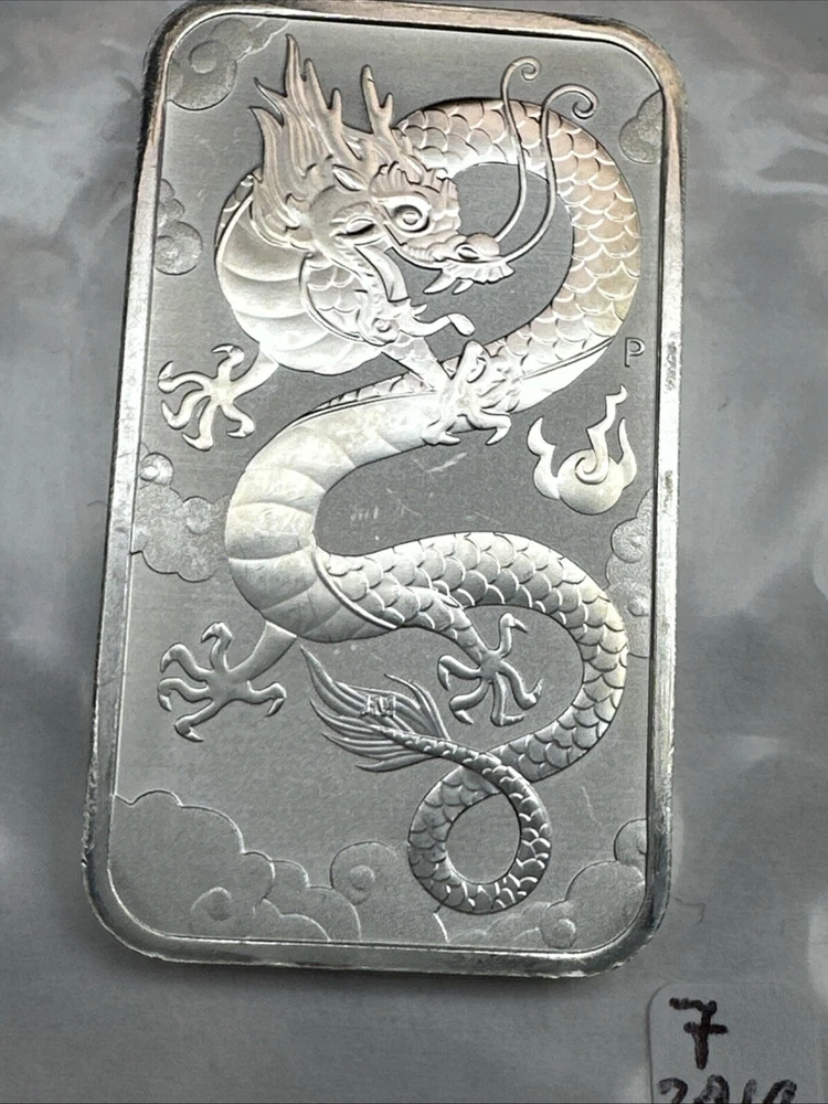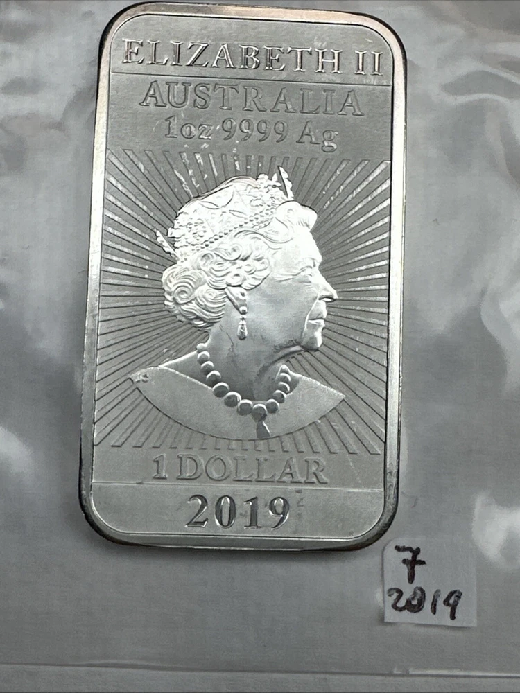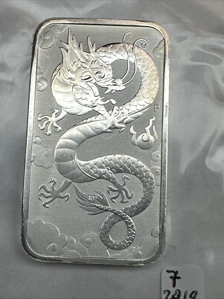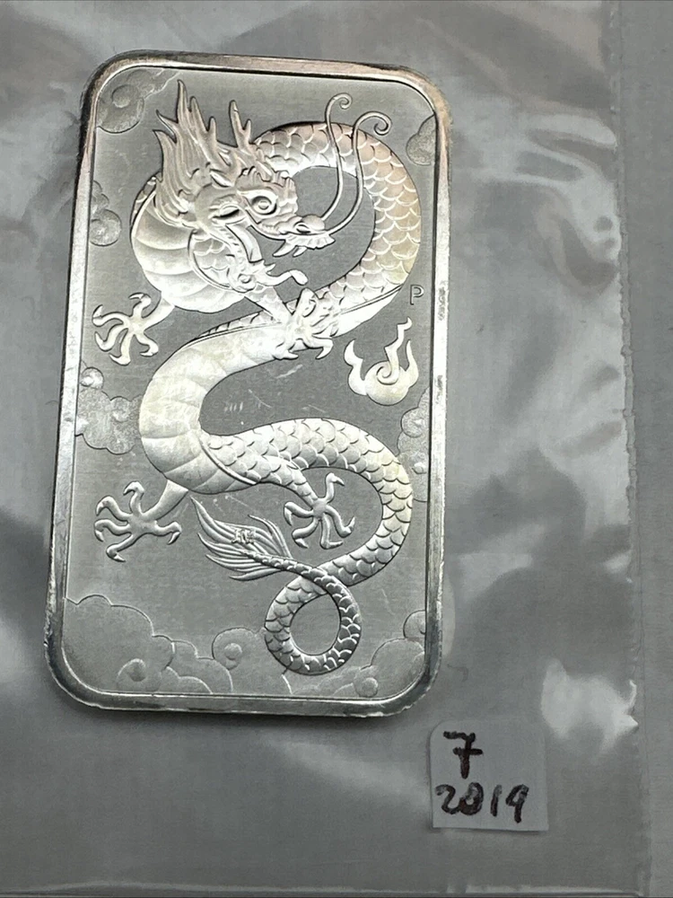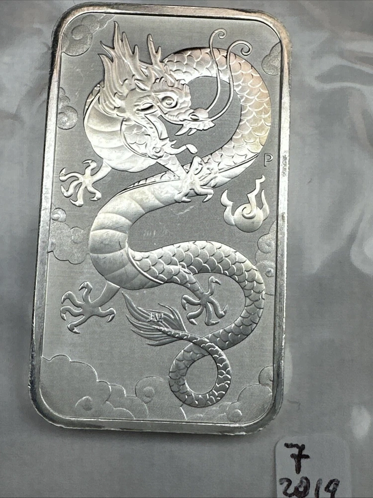 2019 Australia Dragon bar 1 oz Silver 0.9999 $1 Perth Mint Bar