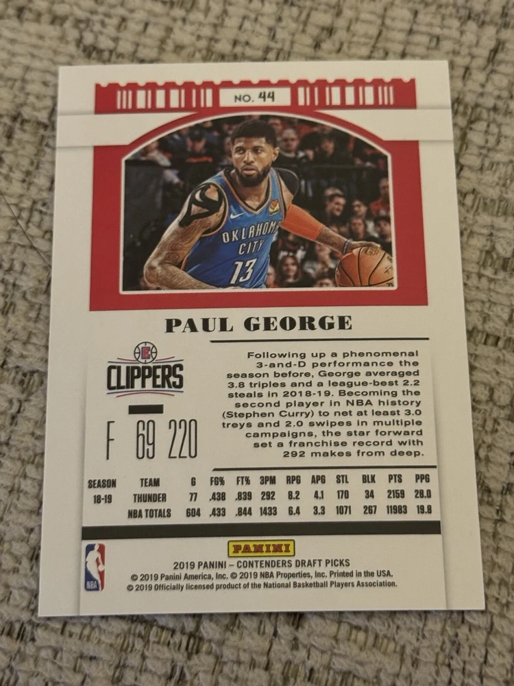 2019 Paul George Panini Contenders Draft Picks Red Foil /75 #44. Condition is Ungraded. Shipped with eBay Standard Envelope for Eligible Items up to $20.