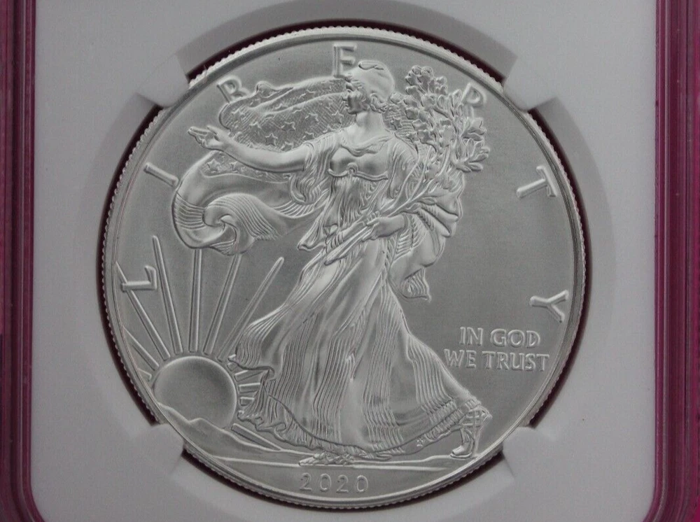 Coin: American Eagle Strike Type: Satin Certification: NGC Brand: U.S. Mint Total Precious Metal Content: 1 Troy Ounce Year: 2020 Brand/Mint: U.S. Mint Shape: Coin Grade: MS 70 Fineness: 0.999 Composition: Silver Country/Region of Manufacture: United States Precious Metal Content per Unit: 1 oz
