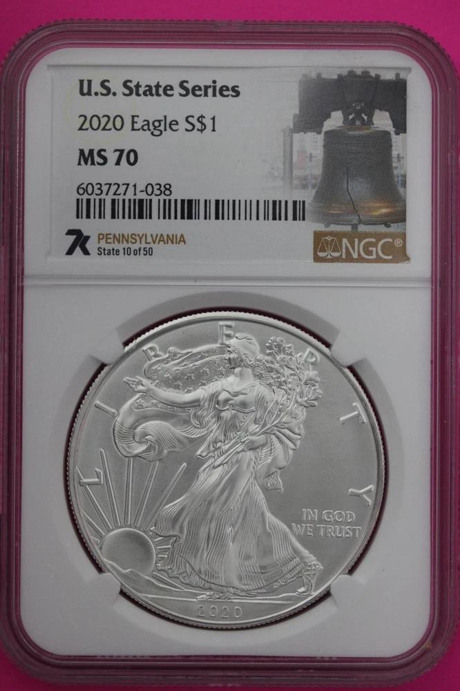 2020 MS 70 American Silver Eagle Pennsylvania State Series NGC Certified 596