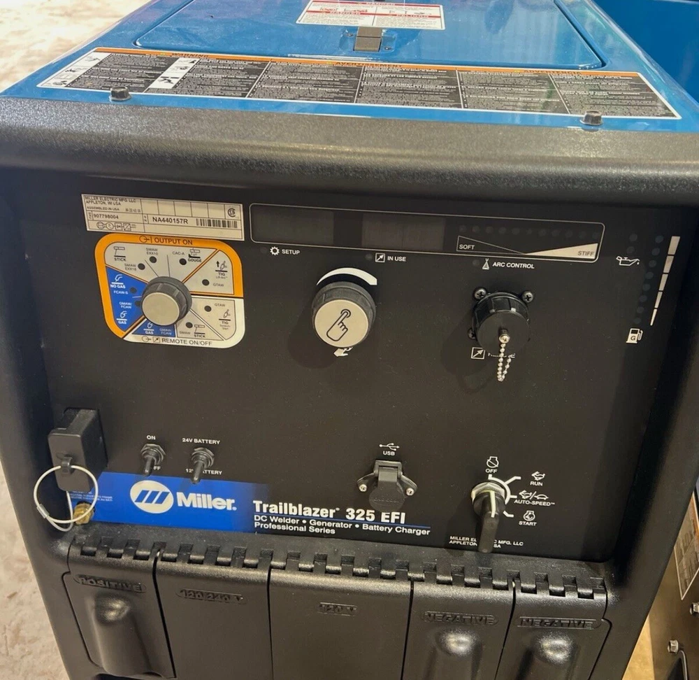 TRAILBLAZER 325 EFI WELDER/ GENERATOR WITH HAND CART FOR OFF ROAD JOB SITE NEEDS INCLUDED WORTH $$$ . THERE ARE 2 PICTURES ILLUSTRATING THE HANDCART THAT IS INCLUDED AND THE OTHERS ARE OF THE WELDER THERE AREA LIGHT SCUFF MARKS BUT OVERALL CONDITION IS GREAT AND WILL TAKE CARE OF YOUR JOB SITE NEEDS. SHIPS VIA FREIGHT.