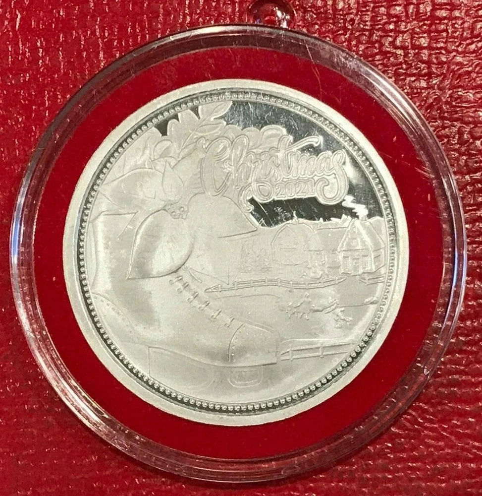 Home2021 CHRISTMAS SCENE WITH SHOE ORNAMENT 999 FINE SILVER TROY 1 OZ ROUND-FEB353