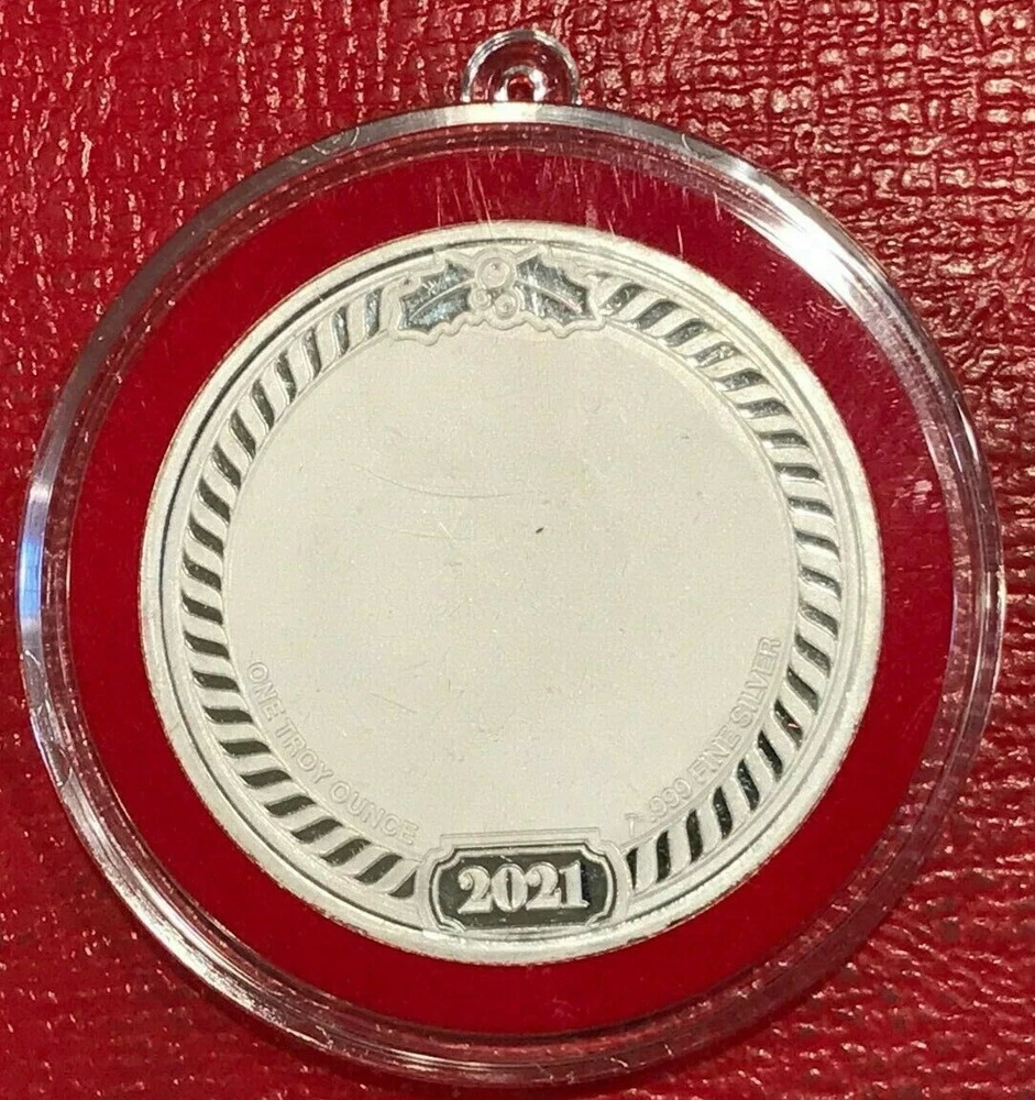 2021 CHRISTMAS SCENE WITH SHOE ORNAMENT 999 FINE SILVER TROY 1 OZ ROUND-FEB353