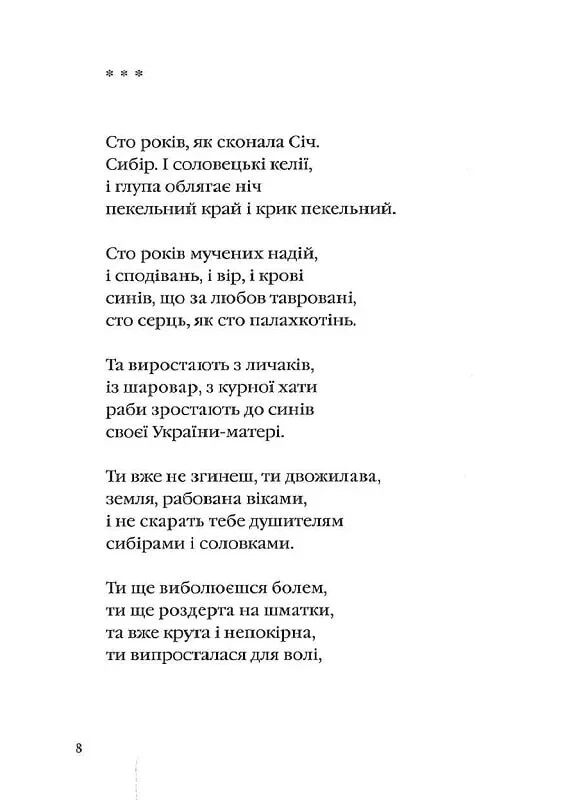 The book contains the best poems of the Poet, as well as the most expressive passages from letters, full of philosophical generalizations and poignant details. Notes under some poems shed unexpected light on the dramatic moments of Vasyl Stus's life and work. We hope that this book will become your favorite collection of works by a distinguished Poet and Citizen. Format: 120x165 mm