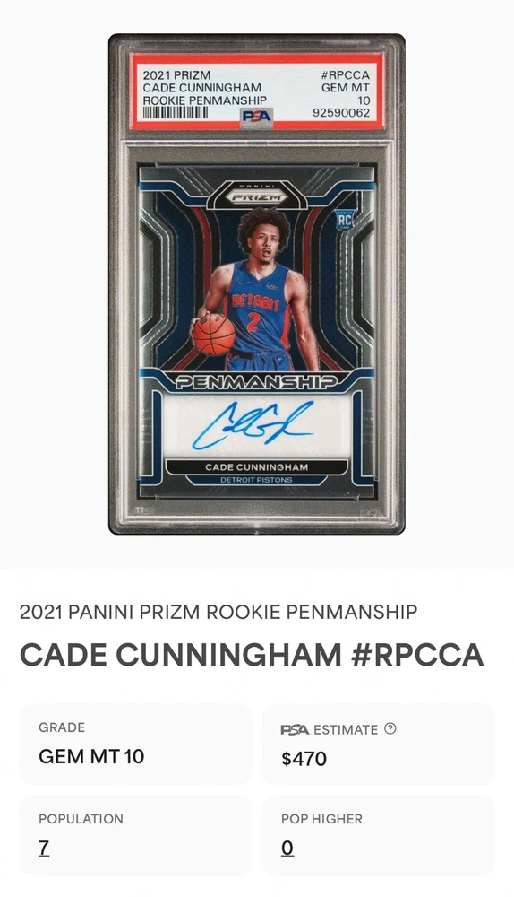 CADE CUNNINGHAM 2021/22 PANINI PRIZM ROOKIE PENMANSHIP AUTOGRAPH PISTONS AUTO SP