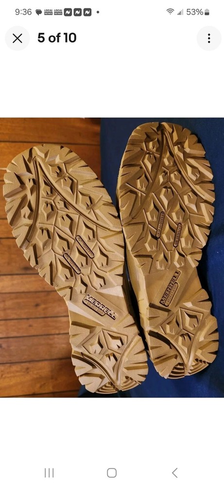 100% Cotton Origin Imported Sole material Rubber Shaft circumference 68.58 centimeters About this item NOTE: UNISEX SIZING RUNS AS MEN'S SIZING. WOMEN SHOULD SELECT A SIZE AND HALF SMALLER THAN THE MEN'S SIZE (Ex.: Unisex Size 7 = Men's Size 7 & Women's Size 8.5) MATERIAL: Suede and and abrasion resistant non-wicking textile upper and breathable mesh lining COMFORT: Merrell Air Cushion Viz absorbs impact and cradles the heel for optimal stability and support MULTI-USE: Tactical boots are suitable for outdoor sports, army tactical or desert. You can wear our combat boots to work, to jungle, to hiking, to climbing, to hunting or rocky place, etc DETAILS: Traditional lace closure and Kinetic Fit Advanced removable contoured insole with enhanced heel and arch structure and integrated cushion pod for medium support Description DETAILS. Tough and dependable. On Duty or off. The MQC Tactical boot is legendary Merrell performance made especially for servicemen and women. FEATURES: - Suede and abrasion resistant non-wicking textile upper; - Breathable mesh lining; - Traditional lace closure; - Dark Coyote color is AR670-1 compliant; - Bellows tongue keeps out debris; - Medial venting for breathability; - Kinetic Fit Advanced removable contoured insole with enhanced heel and arch structure and integrated cushion pod for medium support; - Merrell Air Cushion Viz absorbs impact and cradles the heel for optimal stability and support; - Molded nylon arch shank for midfoot support and flexibility; - Merrell M Select GRIP rubber tunes each outsole with durable traction that grips when and where you need it; - 4mm lug depth; - Shaft Height: 21.59cm; - Heel Height: 5.8cm; - Weight: 2lb / 886g
