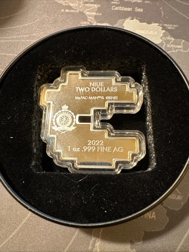 Precious Metal Content per Unit: 1 oz Grade: Ungraded Fineness: 0.999 Composition: Silver Country/Region of Manufacture: Niue Year: 2022 Certification: Uncertified Strike Type: Proof Coin: Ms. Pac Man Brand/Mint: New Zealand Mint