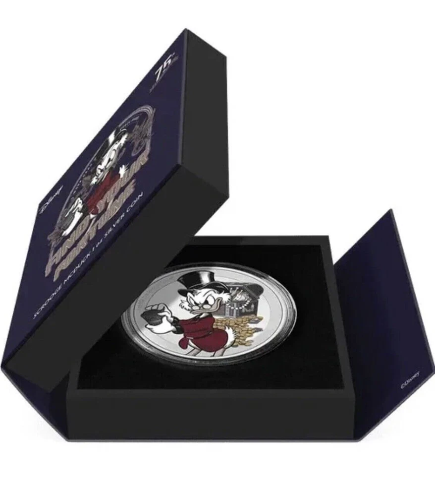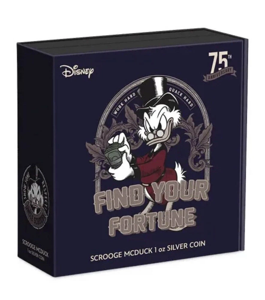 FREE SHIPPING ON DOMESTIC ORDERS New releases Deals Exclusives Bullion Gold Graded Licensed Standing behind our products & our name for over a century SINCE 1915 SHOP BY CATEGORY Animal Theme Art Coins Coin Sets Comics, Notes, & Foils Deals Famous Figures & Landmarks Gold Coins GR Reserve Exclusives Graded Coins Holiday Theme Licensed Products Lunar Calendar Nature Coins Premium Bullion Rare Certificate Numbers Shaped Coins Warriors & Gods Other PARTNERS & AFFILIATIONS STORE NEWSLETTER Add us to your Favorites and receive exclusive emails about new items and special promotions! Sign up 2022 Niue Disney Scrooge McDuck 1 oz Silver Coin NGC PF 70 UCAM Product Description Making his first appearance in the 1947 comic book story, ‘Christmas on Bear Mountain’, Disney’s Scrooge McDuck celebrates his 75th anniversary! Officially licensed, this impressive 40mm diameter, 1 oz pure silver coin, showcases Scrooge McDuck in full colour. He is seen wearing his stately attire and holding his beloved money, with a full treasure chest and coins scattered behind him. This is offset wonderfully against the mirror-finish background and frosted border. Some slight relief has also been added for a 3D effect. To confirm the coin as legal tender, the effigy of Queen Elizabeth ll has been engraved on the obverse. • Officially licensed Disney collectible coin. • 1 oz pure silver coin to celebrate the 75th anniversary of Disney’s Scrooge McDuck. • The design features Scrooge McDuck in color, surrounded by money. This is offset by a stunning mirror-finish background and frosted border. • Impressive coin measures a substantial 40mm. • Presented in a special edition, anniversary-themed box. • Unique anniversary memento for any Disney fan or coin collector. • Limited worldwide mintage of only 1,947 coins. Contact Shipping Payment Returns To contact our Customer Service Team, simply click the button here and our Customer Service team will be happy to assist. Domestic Shipping Options - Free shipping USPS Ground Advantage UPS Ground Saver International Shipping Options – Calculated USPS Priority Mail International UPS Worldwide Expedited UPS Worldwide Saver UPS Standard to Canada Handling time Will ship within 1 business day of receiving cleared payment. Ship From Location Attleboro, Massachusetts, 02703, United States Note to international buyers The item price and shipping charges do not include import duties, import taxes, and customs clearance fees. These charges are the buyer's responsibility. Please check with your local customs office to determine what these additional charges may be prior to bidding or purchasing an item. If your order is returned to GR Reserve due to your refusal to pay duties or taxes, or if the carrier (for example, Federal Express or UPS) was unable to deliver your order, you agree you are responsible for any return shipping fees, additional duties, or applicable taxes for returning the package back to GR Reserve. In addition, if your package is returned to GR Reserve, we will not reship your order unless and until we are paid in full for any return shipping costs, duties, taxes we have had to pay or advance for you as well as any subsequent re-ship fees back to you. Immediate payment is required upon selecting "Buy It Now" or upon checking out through the cart. We accept payment via U.S. PayPal accounts and all Major Credit Cards, Debit Cards & Google Pay. We are legally required to collect sales tax in those states and localities where we maintain a physical presence. The applicable amount of sales tax charged to an order will be calculated based on the shipment destination's state and local sales tax laws. Thank you for shopping with us on eBay! Standard Other eBay Mastercard® Earn up to 5x points when you use your eBay Mastercard®. Learn more GR Reserve’s return, refund, and exchange policy is limited to (30) business days from the date that you received your item. If you find you have received a defective item, please contact us, and include detailed photos. GR Reserve will then assess whether the product is eligible for a return, refund, or exchange. For approved exchanges, you must follow all instructions provided by us, including packaging the product appropriately. We are responsible for the cost of return domestic shipping and the risk of loss during the return shipment. Refer to eBay Return policy for more details. You are covered by the eBay Money Back Guarantee if you receive an item that is not as described in the listing. Free Shipping On all domestic order 100% SATISFACTION GUARANTEED About Feedback GR Reserve - Attleboro, MA 02703