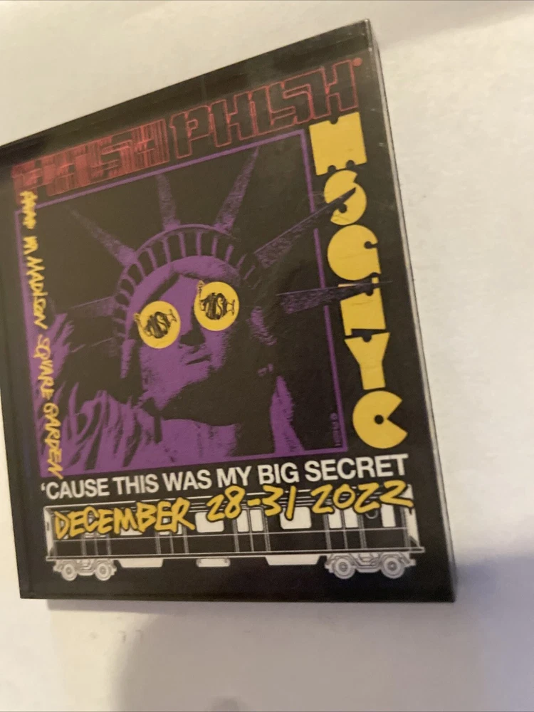 This unique magnet features a stunning statue of Liberty from the iconic Phish concert at Madison Square Garden in 2022. The magnet is a must-have for any Phish fan and collector of music memorabilia. The piece is an original reproduction, modified to capture the essence of the live performance. It is perfect for displaying on a fridge, locker, or any magnetic surface. Don't miss your chance to own a piece of Phish history with this exclusive magnet.