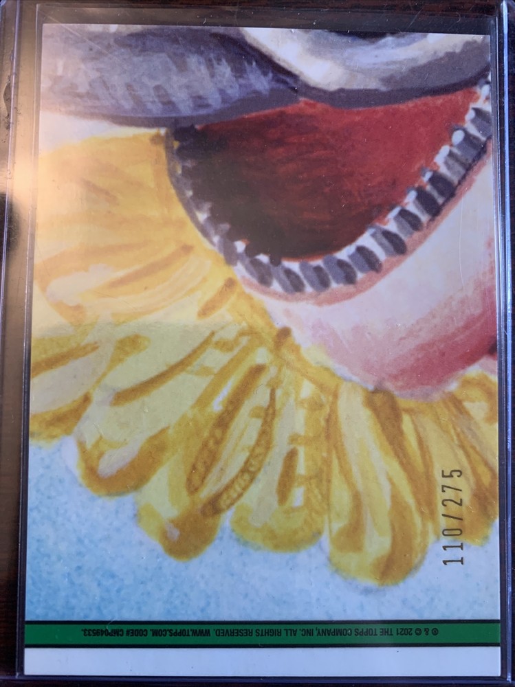 2022 Topps Chrome GPK #157b Distortin' Morton yellow wave refractor #110/275. One of the weirder and arguably racist GPK cards. I'm actually surprised they made this one.
