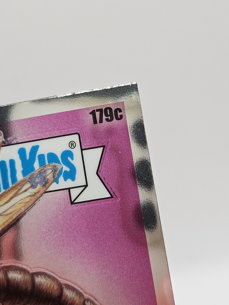 The product is a 2022 Topps Garbage Pail Kids Chrome trading card featuring the rare C variation card 179c Bit Kit. It is part of the Garbage Pail Kids franchise and is manufactured by Topps in the United States. The card is made of card stock, standard size, and targeted for ages 6 and up. It includes chase features and is in English language.