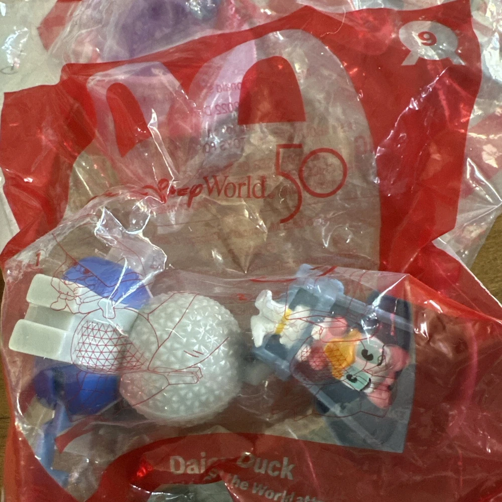 The product is a set of six Happy Meal toys released by McDonald's in 2022 to celebrate the 50th anniversary of Walt Disney World. The toys feature characters or themes related to the Walt Disney World 50th anniversary. They are figurines designed for both boys and girls to enjoy. This special edition collection is a part of McDonald's ongoing partnership with Disney to offer fun and collectible toys to customers through their Happy Meals. Includes : 1 goofy / 2 Mickey Mouse/ 3 Minnie Mouse/ 4 Pluto/ 5 goofy / 8 Donald Duck / 9 Daisy Duck.