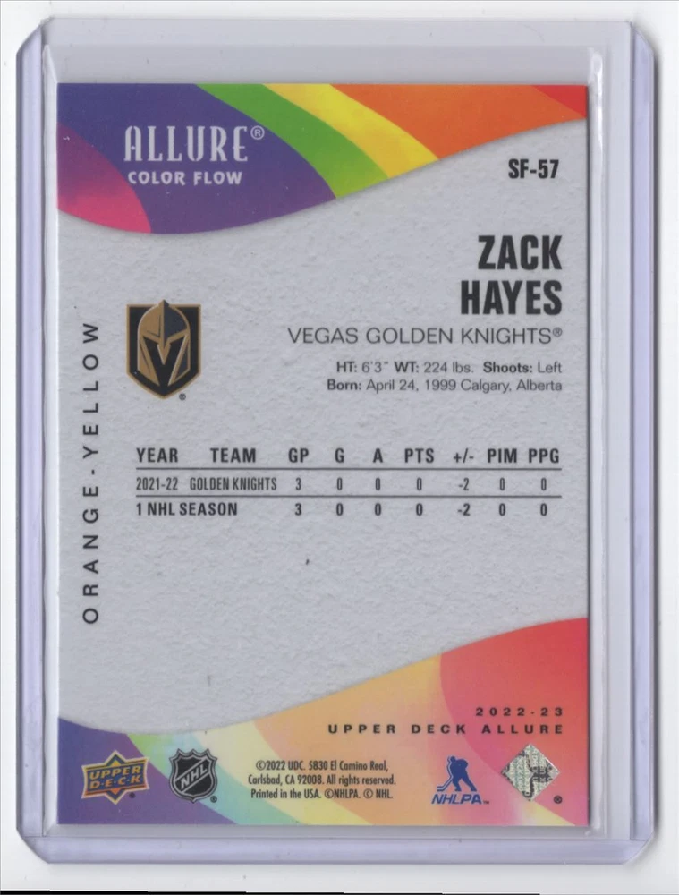 About Me Other Listings Feedback Add to Favorites Contact Me Striking Cards 901 2022-23 Orange-Yellow Zack Hayes Vegas Golden Knights #SF-57 No stock photo / These are real scans or pictures Details Description: Zack Hayes Category: Hockey Year: 2022 Product: Upper Deck Allure Color Flow Set: Orange-Yellow Team: Vegas Golden Knights Card Number: SF-57 Dimensions: 4" x 3" SKU: HK B0001 R01 B (72) Listing By Kronocard trading cards software v2.6.5.3