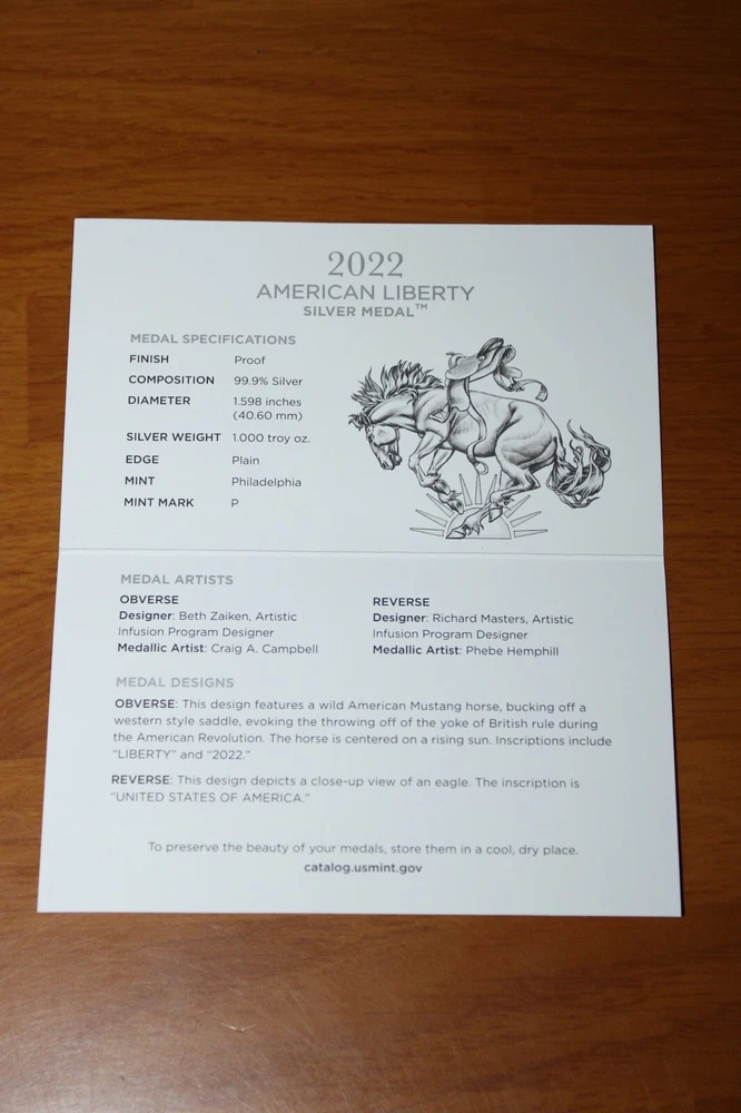 2022-P American Liberty 1 Oz Silver Medal - Proof Selling the 2022-P American Liberty 1 Oz Silver Medal Your purchase will be shipped within two business days after payment has been received. Thank You 24AL22-1