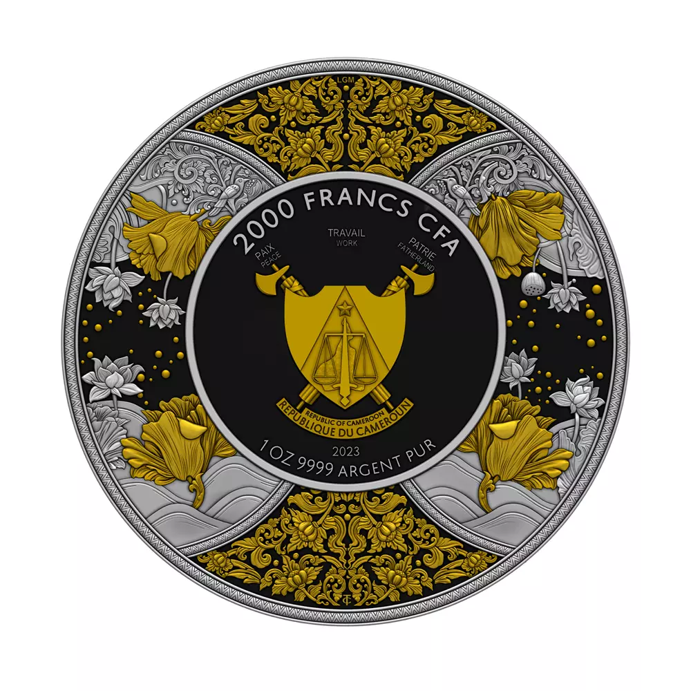 2023 Cameroon Durga 1 oz Silver Ruthenium Dark Gilded Coin