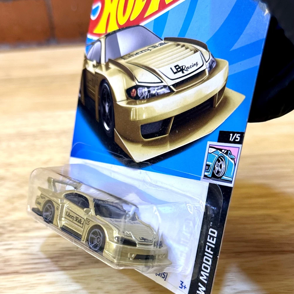 Capture the essence of speed and style with the 2023 Mainline Hot Wheels Gold LB Super Silhouette Nissan Silvia S15 Liberty Walk. This 1:64 scale diecast model is a true representation of the iconic Nissan Silvia S15, meticulously crafted to showcase the vehicle's sleek design and contemporary aesthetics. A must-have for collectors and enthusiasts, this model is part of the HW Modified series and comes in a striking gold color that's sure to stand out in any display. With its limited edition status and special features, it's a unique piece that celebrates the fusion of automotive artistry and performance.