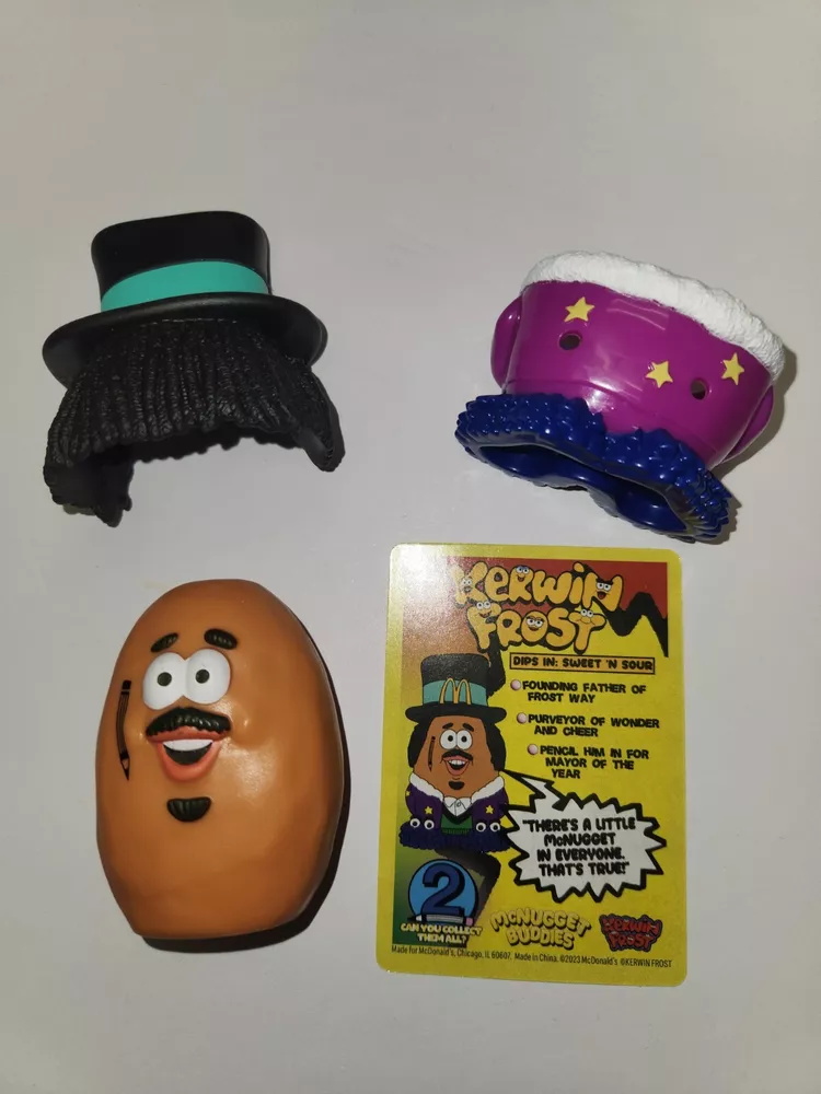 The product is a 2023 McDonald's Kerwin Frost McNugget Nugget Buddies toy with a card included. It features Kerwin Frost as the character family, making it appealing to fans of the brand. The toy is designed for children aged 3 and up, with age levels ranging from 3-4 years to 17 years and older. It is not a custom bundle and has not been modified, offering collectors and fans a unique McDonald's branded item to add to their collection.