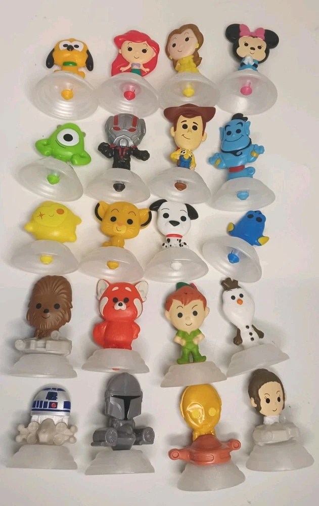 The product is a lot of 20 Happy Meal toys from McDonald's celebrating Disney's 100 Years Anniversary in 2023. The toys feature characters from the Disney brand, specifically focusing on Lightning McQueen from the animated movie series. These toys are part of a limited edition collection and are considered hard to find by collectors. They represent a special collaboration between Disney and McDonald's to commemorate the milestone anniversary, making them a coveted item for fans of both brands.