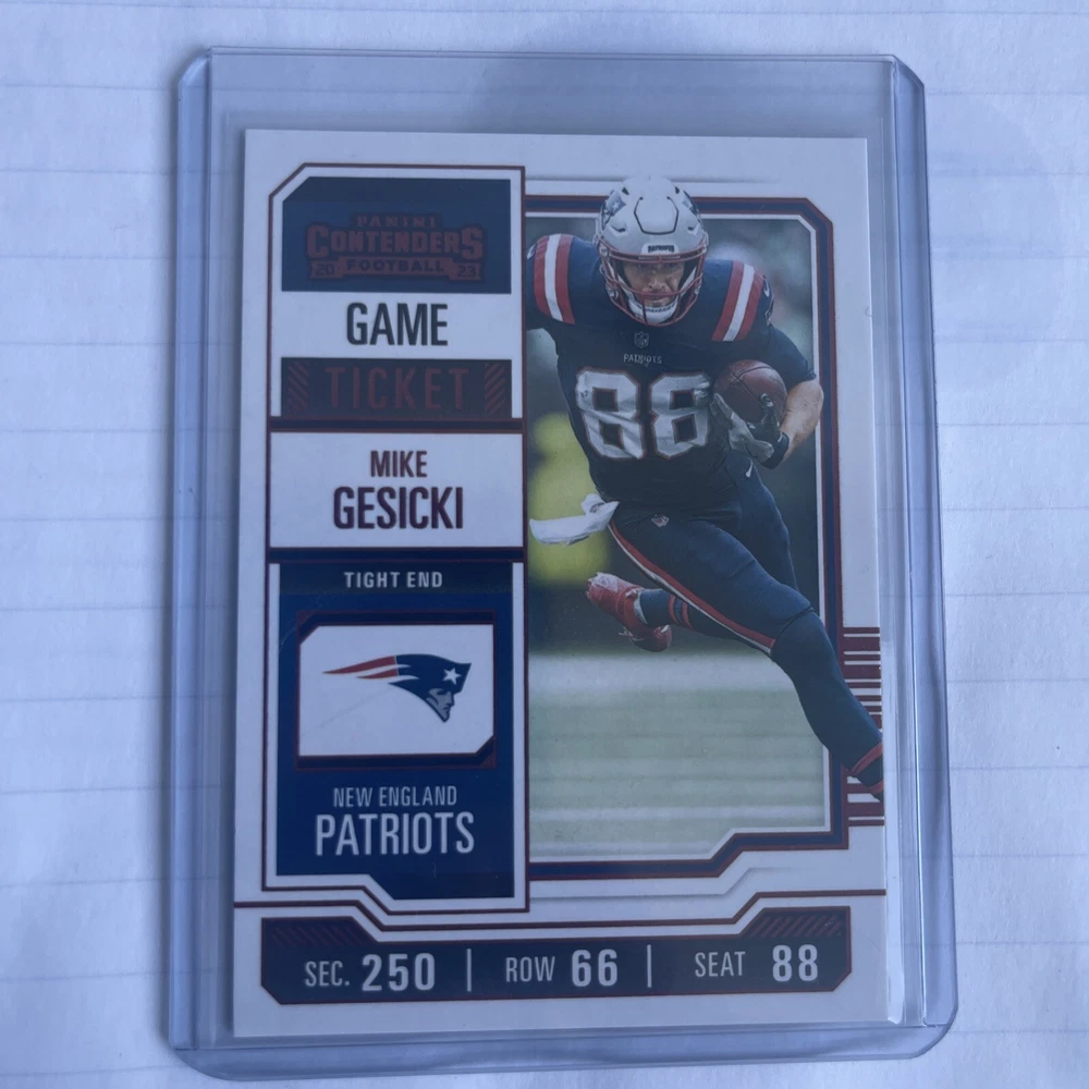 Get your hands on this amazing 2023 Panini Contenders Bronze Game Ticket #70 featuring Mike Gesicki! This rare and highly sought-after trading card is perfect for any sports fan and collector. The card showcases a stunning image of Gesicki in action, making it a must-have for any fan of the Miami Dolphins. With its exceptional quality and attention to detail, this card is sure to impress. Add it to your collection or gift it to a fellow sports enthusiast. Don't miss out on the opportunity to own this valuable piece of sports memorabilia.