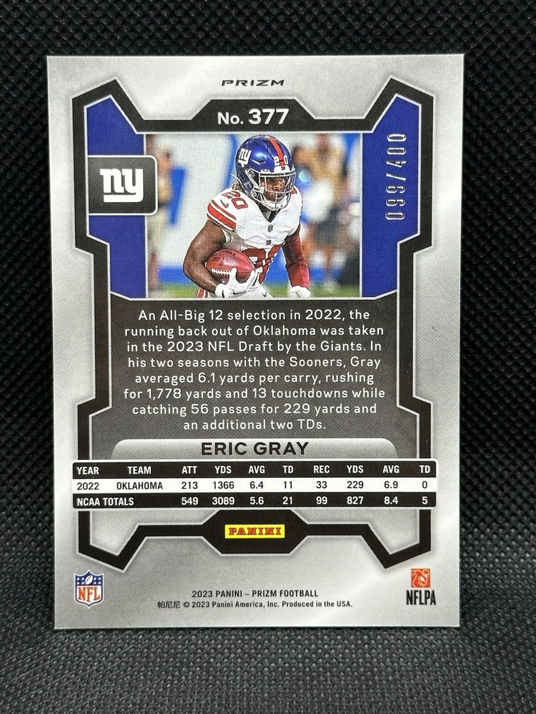 2023 Panini Prizm Rookies Pandora Prizm Eric Gray RC #377 Out of 400