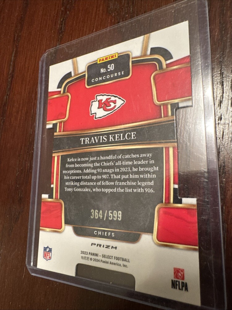 Type:Sports Trading CardTeam:Kansas City ChiefsSet:2023 Panini SelectPlayer/Athlete:Travis KelceSeason:2023Sport:FootballLeague:National Football League (NFL)Manufacturer:Panini