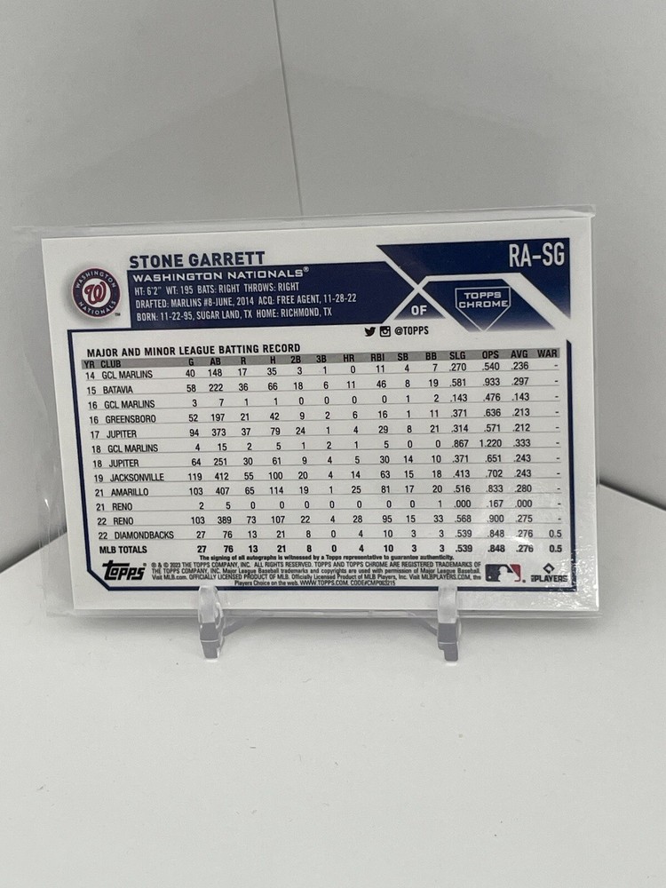 This 2023 Topps Chrome Stone Garrett blue raywave refracter rookie autograph numbered 021/150 is a great addition to any collection. It is extremely rare with there only being 150 of them, and is in great condition! Feel free to message me with any offers/questions