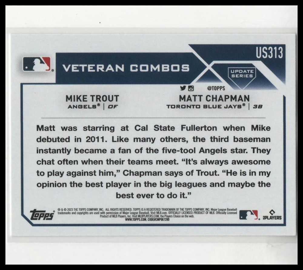 Home2023 Topps Update US313 Superstar Talk Mike Trout Matt Chapman Angels Blue Jays Baseball Card