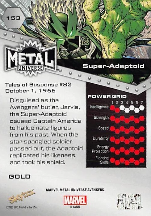 Dive into the Marvel Universe with the 2023 UD Marvel Metal Universe Avengers Gold Parallel Pick your Hero card. This premium collectible, crafted by Upper Deck, features the iconic Avengers in a stunning gold parallel variety, adding a luxurious touch to your collection. Each card celebrates the heroism of the Avengers with intricate artwork and design, embodying the spirit of the franchise. Whether you're a seasoned collector or just starting, this card is a must-have to honor your favorite Marvel protectors. Select your favorite hero and bring home the golden excitement of the Marvel Metal series. Thank you for your interest in our items on e-bay. Item: The item you receive will be the one in the picture, unless you are purchasing from a bulk / you choose lot. We do not grade these items so please inspect the picture closely to verify the condition of the item. Items in a bulk listing may not be the one pictured depending on quantities, but should reach the excellent condition threshold Most Items are NM/Mint and/or pack fresh, but some items may have some wear. We do not sell items in poor condition unless it is noted under condition. We mark everything else excellent condition (not NM) because opinions on an items condition varies greatly. All items are authentic, but we did have a run of fakes get by us from a large collection we purchased. Please notify us immediately if you suspect fake or counterfeit items are listed or have been purchased by you Communication: We will always be courteous in our messages with you. Our team will be even happier to assist you if you do the same. Contact us first with an issue. After e-bay gets involved, we can no longer help you and issues will be left up to e-bay to manage. Feel free to contact us at any time before or after a sale with any concerns. We will be glad to help but return messages could take up to 2-3 days although we aim for same day. Returns: We do not accept any returns except in the case of a clear mistake made by our team. We will work with you towards a satisfactory conclusion in all cases. We will work with USPS to resolve any issues of missing or damaged shipments Shipping: We ship the cheapest way possible to save you money except for the following instances- All Items over $20 will ship USPS Ground or equivalent Any items that will not fit in the cheapest shipping packaging (example: More than 4 cards in a 5x7x envelope). These will ship USPS Ground or equivalent Any Items valued over $100 will get extra insurance purchased at our expense to protect your investment USPS can be Slow, so please allow 7 days after the item is late before filing a claim. In most cases the item shows up. We combine shipping usually if the difference is greater than five dollars over paid vs.actual cost. We attempt to package all items securely using paper or bubble wrap. Cards will be in Top Loader, Padded envelope, or between ding protectors