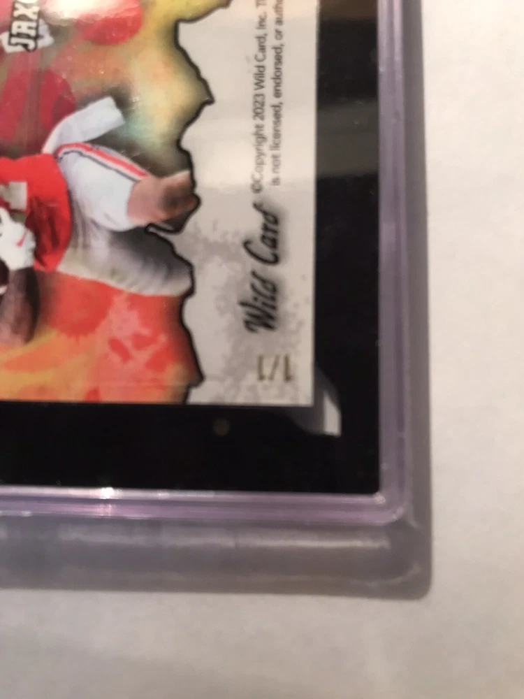 This 2023 Wild Card Alumination trading card features Jaxon Smith-Njigba and Dino Might in a Kaleidoscope parallel variety. The card is an original and has a print run of 1/1, making it a rare find for any collector. It is a rookie card and was manufactured by Wild Card in 2023 for the National Football League (NFL). The card is not autographed and is part of the Seattle Seahawks team. It is a great addition to any sports trading card collection and is sure to impress.