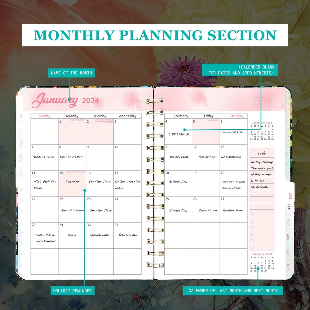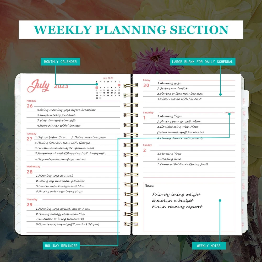 2023-2024 Monthly Planner, Academic Planner 2023-2024 Calendar, Daily Weekly Planner Tree and Flower 8.5 * 6.4" ✿1.Calendar Planner 2023-2024: This daily planner has two years calender and three years American, British and Canadian holiday overview. You can easily find certain day and holiday information in this notebook calendar. The size of this agenda planner is 8.4*6.3 inch. Compared with wall calendar, it is small enough to be put into your suitcase and backpack. ✿2.Monthly Planner 2023-2024: This planner features 12 months of monthly page from July, 2023 to June 2024. Each monthly has a to do list section and holiday information for this month. 1.18*1.06 inch blank of each day is very suitable for you to plan your long term goals and schedule. Monthly tab can help you to easily find the certain page you intend to write. ✿3.Weekly and Daily Planners 2023-2024: In weekly page, you can write your weekly priorities to remind you of the most important targets that is necessary to be finished in this week. Each day has 7 blank line. The space is large enough to write your daily detailed schedule. It is designed to help to organize your life and resist your procrastination. ✿4.Exquisite Cover Design and Durable Material: Through complicated and meticulous technological process, you can enjoy extremely smooth writing without ink bleed. The two-wire binding allows you to easily turn page and the inner pocket can let you store some cards that you are afraid to lose. The exquisite hardcover design can protect this planner and provide aesthetic appreciation at the same time. ✿5.Quality Guarantee and After Sale Service: We provide 30 days undamaged good return for any reason. Please don’t hesitate to ask our customer service if you have any questions about this product. We will do the best to make you satisfied. ✿1.Calendar Planner 2023-2024: This daily planner has two years calender and three years American, British and Canadian holiday overview. You can easily find certain day and holiday information in this notebook calendar. The size of this agenda planner is 8.4*6.3 inch. Compared with wall calendar, it is small enough to be put into your suitcase and backpack. ✿2.Monthly Planner 2023-2024: This planner features 12 months of monthly page from July, 2023 to June 2024. Each monthly has a to do list section and holiday information for this month. 1.18*1.06 inch blank of each day is very suitable for you to plan your long term goals and schedule. Monthly tab can help you to easily find the certain page you intend to write. ✿3.Weekly and Daily Planners 2023-2024: In weekly page, you can write your weekly priorities to remind you of the most important targets that is necessary to be finished in this week. Each day has 7 blank line. The space is large enough to write your daily detailed schedule. It is designed to help to organize your life and resist your procrastination. ✿4.Exquisite Cover Design and Durable Material: Through complicated and meticulous technological process, you can enjoy extremely smooth writing without ink bleed. The two-wire binding allows you to easily turn page and the inner pocket can let you store some cards that you are afraid to lose. The exquisite hardcover design can protect this planner and provide aesthetic appreciation at the same time. ✿5.Quality Guarantee and After Sale Service: We provide 30 days undamaged good return for any reason. Please don’t hesitate to ask our customer service if you have any questions about this product. We will do the best to make you satisfied. Shipping from the USA All of our products are shipped from the USA, ensuring quick delivery to your destination. Payment We offer the following payment methods: PayPal, credit card, bank transfer, and eBay's secure payment system. Free Shipping & Free Returns Shipping within the USA is FREE. Additionally, any return is absolutely free for you. Risk-Free Purchase You have the option to return an item within 30 days without any justification. We cover the return shipping costs! Fast Shipping We ship immediately upon receipt of payment. Generally, the package is delivered within 2-3 days in the USA. If it takes longer, we will contact you. Quality and Costs Made in Europe, USA, China No customs fees or additional charges Total satisfaction guarantee Invoice with declared VAT available upon request in .pdf format Feedback Your feedback is very important to us. After you pay for your purchase, you will automatically receive positive feedback from us.