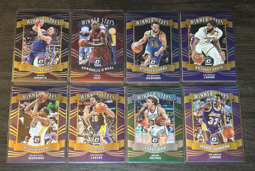 Insert Lot Includes Cards Pictured: (6) My House (8) Winner Stays (9) Express Lane (5) Splash This 28 card basketball insert lot from Panini's 2023-24 Donruss Optic collection features some of the most sought-after players in the league, including Curry, Edwards, and Miller. Each card is meticulously crafted with high-quality materials and designed to captivate basketball fans of all ages. The lot includes a variety of inserts that showcase the players' skills and achievements on the court. Whether you're a seasoned collector or just starting out, this Panini insert lot is a must-have for any basketball card enthusiast. Add it to your collection today and experience the excitement of owning some of the most valuable basketball cards on the market.