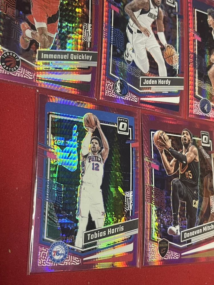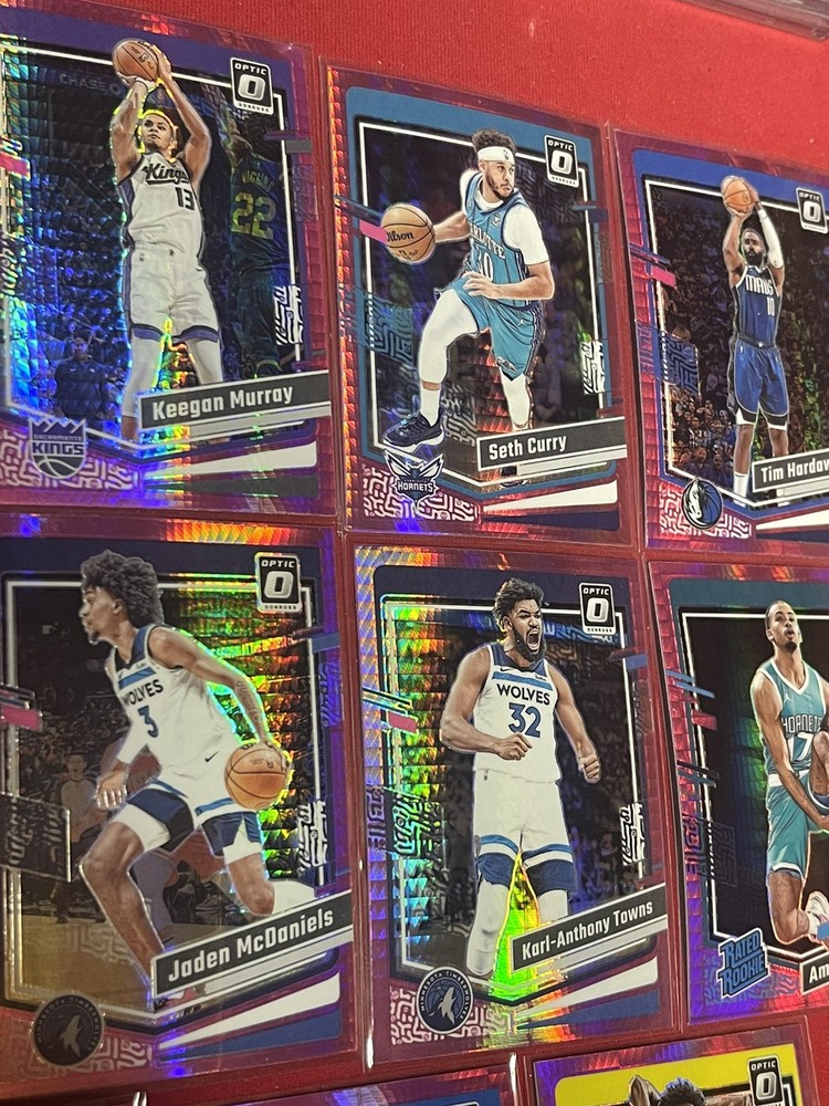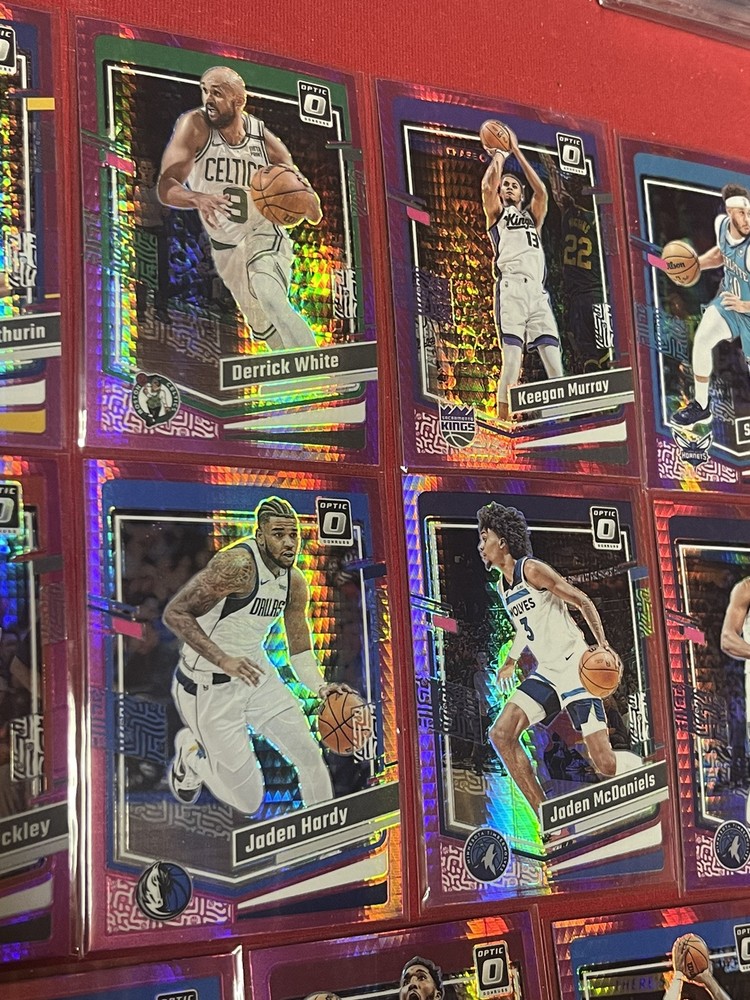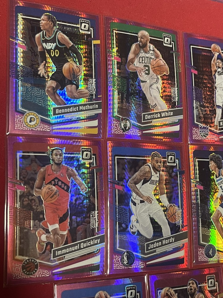 This lot includes 14 trading cards from the 2023-24 Panini Donruss Optic NBA collection, featuring both rookie and veteran players. The cards are all original and have not been autographed or reprinted. Each card showcases the player in a hyper pink prizm design, making them stand out in any collection. With features such as short print, parallel, and insert, these cards are sure to be a valuable addition for any basketball fan or collector. The lot was manufactured in the United States and is part of the National Basketball Association (NBA) league. Get your hands on this rare lot today!