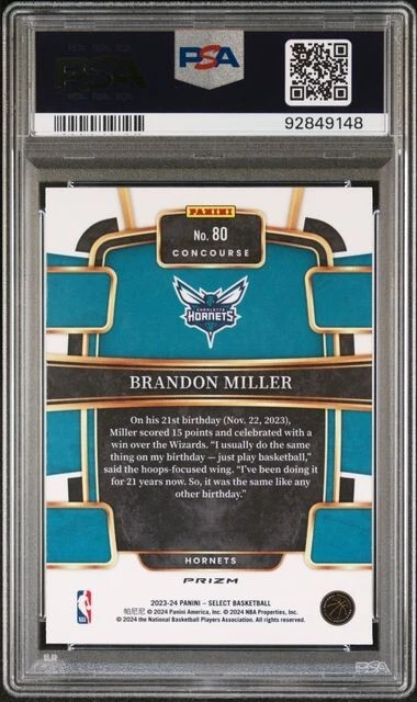 2023-24 Panini Select #80 Brandon Miller Concourse Tectonic (RC) PSA 10