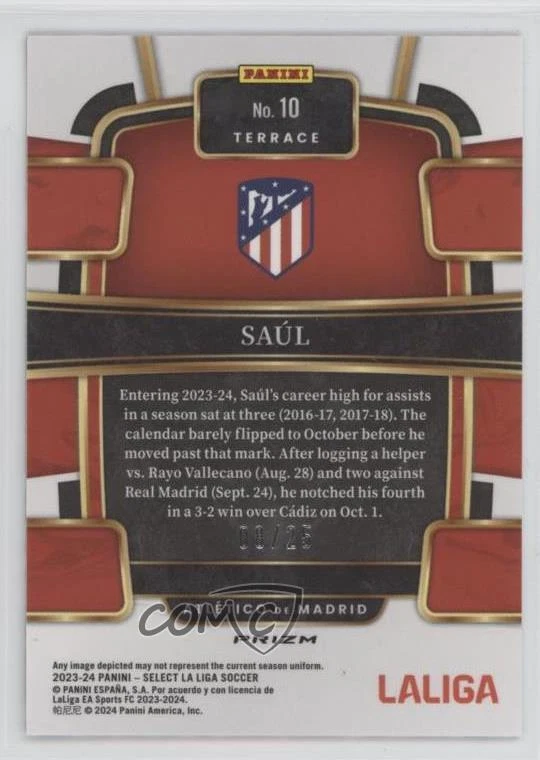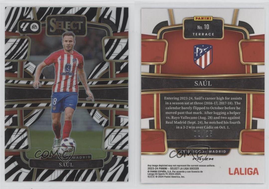 2023-24 Select La Liga Saul Zebra Prizm #'d 21/25 Card went straight from pack to top loader See pics for condition. This set is known for minor surface issues (scratches, dings, print lines, etc.). Assume card will not Gem. Due to weight, multiple cards may be shipped in 1 top loader (55pt or 100pt, each card will be penny sleeved) Combined shipping is available for US addresses only. If you purchase multiple items, please send me a message and I will provide an updated invoice with correct shipping costs. If using eBay Global Shipping, combined shipping is not available. Domestic shipping via eBay Standard Envelope International shipping via eBay Global Shipping Program