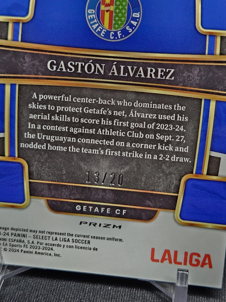2023-24 Select La Liga Gaston Alvarez White Prizm #'d 13/20 Card went straight from pack to top loader See pics for condition. This set is known for minor surface issues (scratches, dings, print lines, etc.). Assume card will not Gem. Due to weight, multiple cards may be shipped in 1 top loader (55pt or 100pt, each card will be penny sleeved) Combined shipping is available for US addresses only. If you purchase multiple items, please send me a message and I will provide an updated invoice with correct shipping costs. If using eBay Global Shipping, combined shipping is not available. Domestic shipping via eBay Standard Envelope International shipping via eBay Global Shipping Program