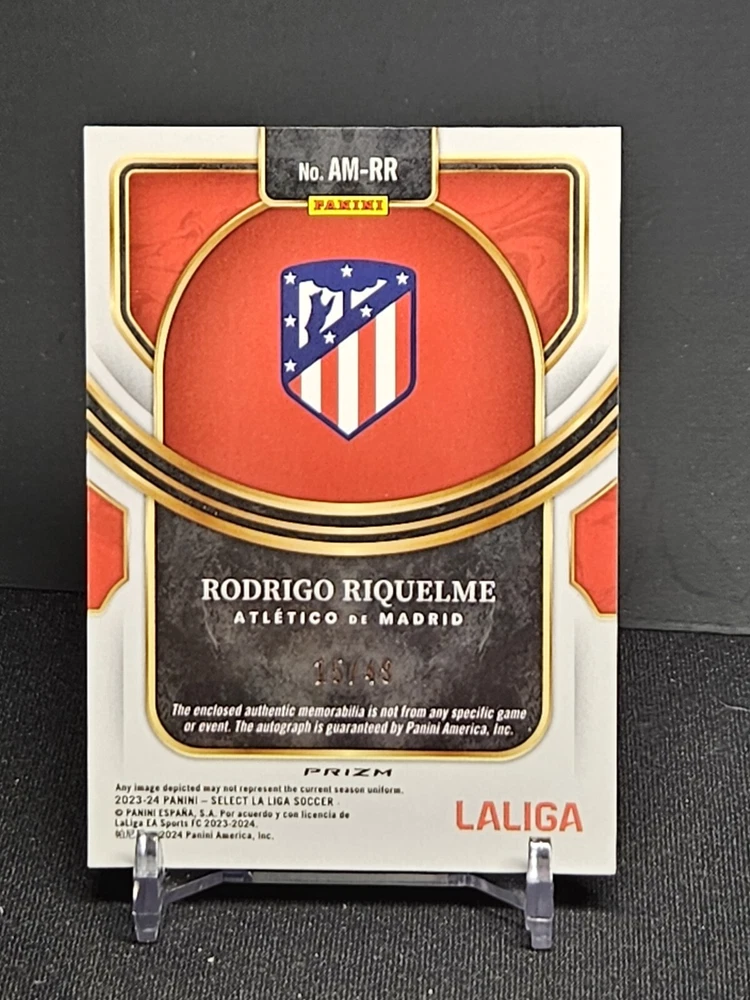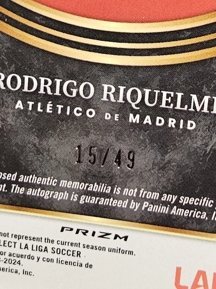 2023-24 Select La Liga Rodrigo Riquelme Autographed Memorabilia Purple Prizm #'d 15/49 Card went straight from pack to top loader See pics for condition. This set is known for minor surface issues (scratches, dings, print lines, etc.). Assume card will not Gem. Due to weight, multiple cards may be shipped in 1 top loader (55pt or 100pt, each card will be penny sleeved) Combined shipping is available for US addresses only. If you purchase multiple items, please send me a message and I will provide an updated invoice with correct shipping costs. If using eBay Global Shipping, combined shipping is not available. Domestic shipping via eBay Standard Envelope International shipping via eBay Global Shipping Program
