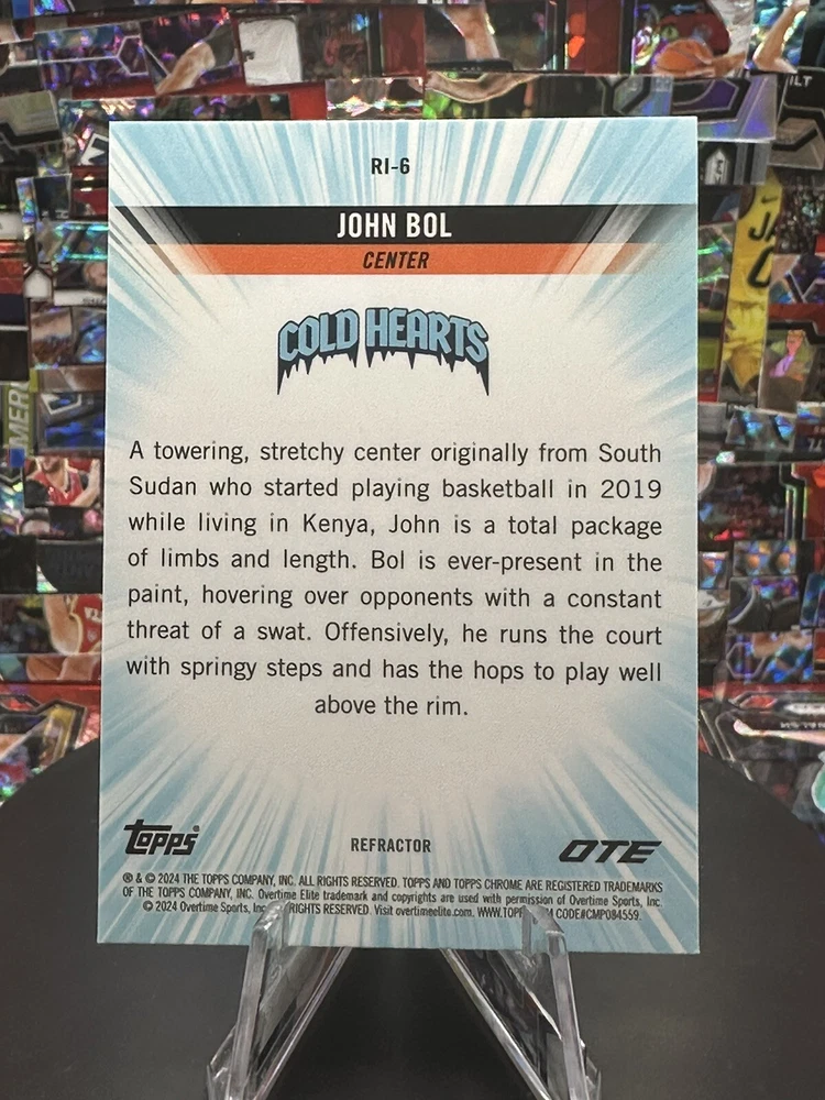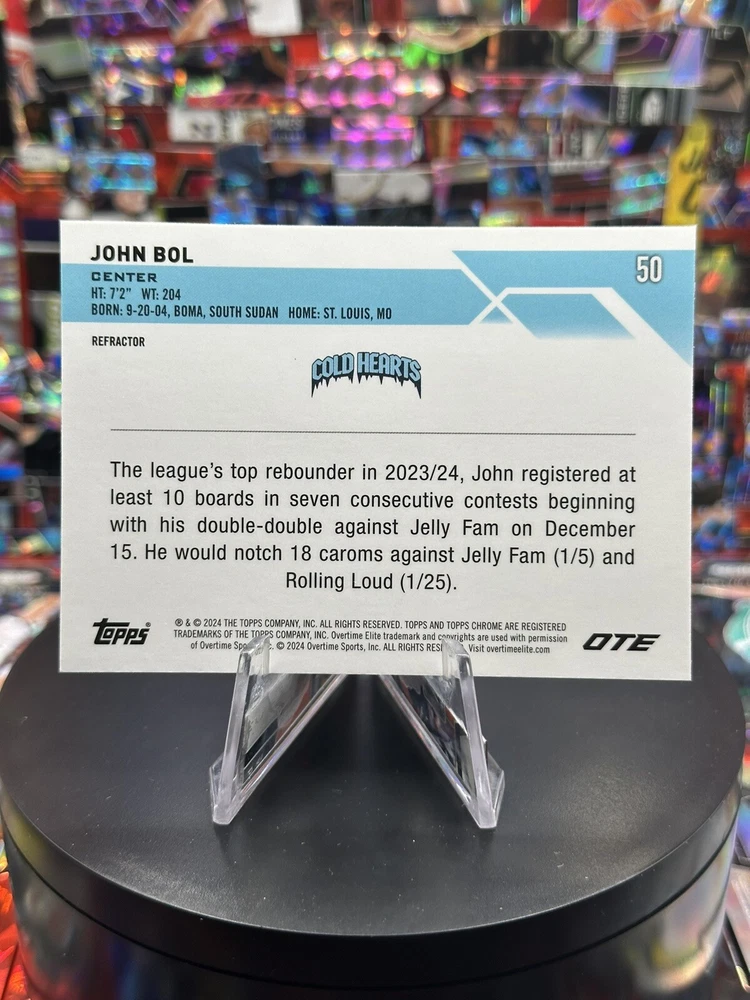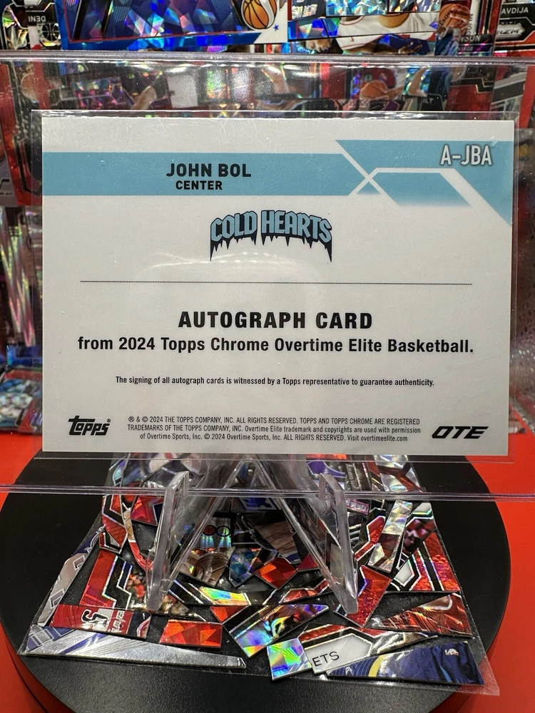 Year Manufactured:2023Material:Card StockFeatures:Box Topper, Insert, Rookie, Serial Numbered, Short PrintSeason:2023-24Player/Athlete:John BolCard Size:StandardSet:2023-24 Topps Chrome OTESigned By:John BolSport:BasketballAutographed:YesType:Sports Trading CardAutograph Format:Label or StickerLeague:National Basketball Association (NBA)Country/Region of Manufacture:United StatesVintage:NoManufacturer:ToppsNumber of Cards:9
