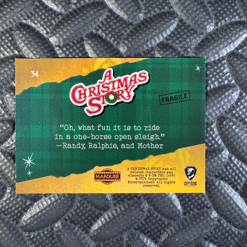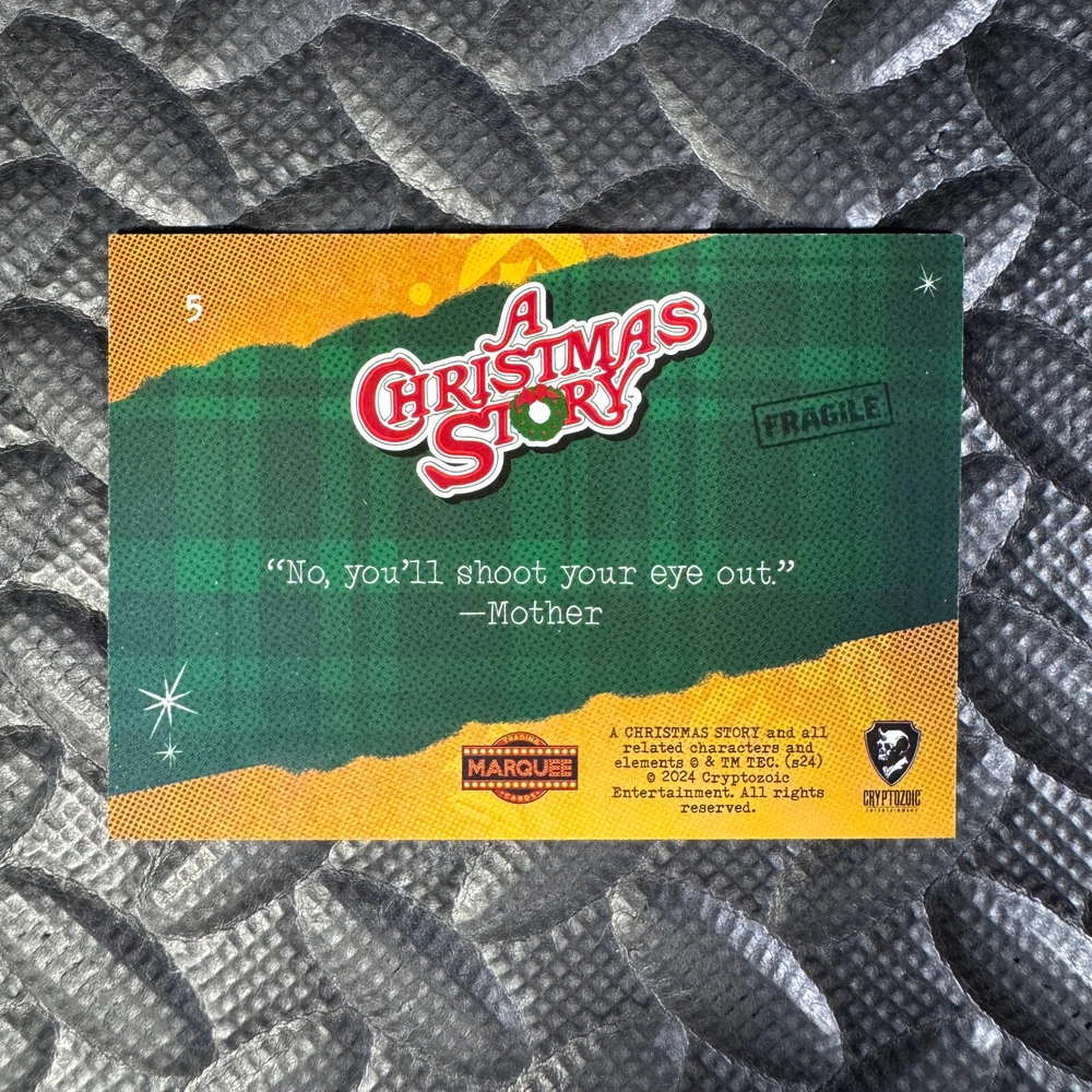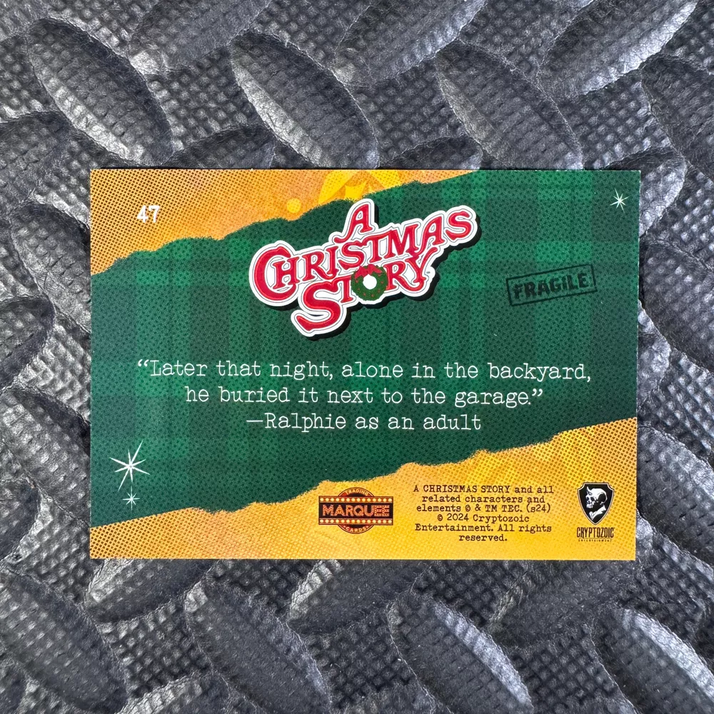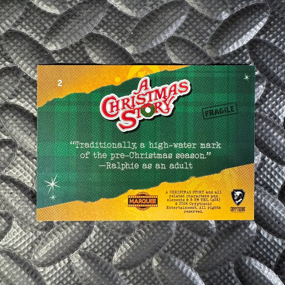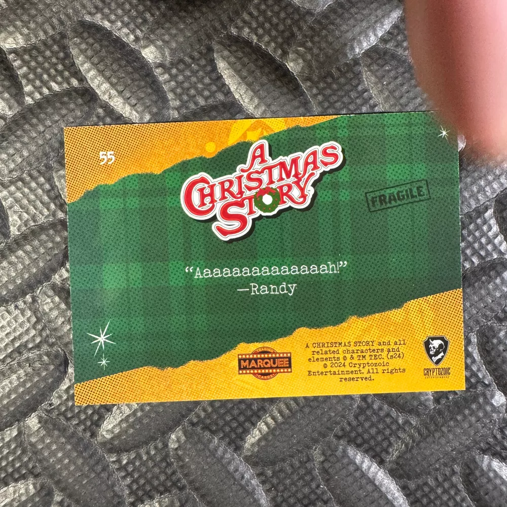 This listing is for your choice of any available 2024 Cryptozoic A Christmas Story base or chase card from the drop-down menu above. Also offering an empty wrapper, and an empty box! (empty box will be shipped flat, in a large envelope) Photos show front and backside of each card, be sure to scroll sideways to view front and backside photos! Check out my other listings for more single parallels from this same set. Any questions? Please ask before buying. International "USPS First Class Mail" will not include a tracking number for this item, if you would like a tracking number please choose the "eBay International Standard Shipping" option when you check out. As with all of my "pick-a-card" listings, I will be shipping with "eBay Standard Envelope". The rules of this envelope state that it cannot be too thick, so please expect your order to be packaged as follows: 1 to 6 cards will be slid into a single sleeve, the sleeve will then be slid inside of a semi-rigid Card-Saver. 7 to 12 cards will be slid into a double sleeve, 13 to 18 cards into a triple sleeve, 19 to 24 cards into a quadruple sleeve(up to six cards per sleeve). The double, triple and quadruple sleeve shipping will not have the Card-Saver. If you buy more than 1 card and want it packaged with more than 1 Card-Saver(or 1 sleeve per card), I kindly ask that you contact me before purchasing to be sure that this is possible to have it done with the stated shipping charge, or if additional shipping would be required. If you do not contact me, then you can expect to receive your order packaged as I have explained here. Please do not expect rigid top-loaders to be included, I don't normally keep a lot of them in stock, but if you message me prior to ordering I will be able to see if I have any that can be included with your order - additional shipping may be required. In order to get free combined shipping from this and any of my other "pick-a-card" listings, you must add all of your cards to the cart and check out when you are done shopping. If you do not use the cart you will be overpaying on shipping and I cannot refund you on over-payed shipping. So please use the cart and get your FREE COMBINED SHIPPING!