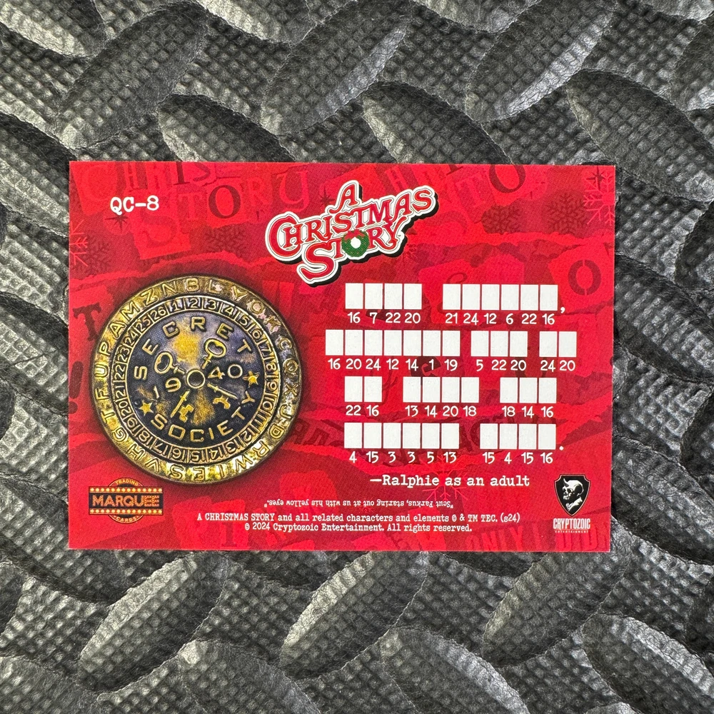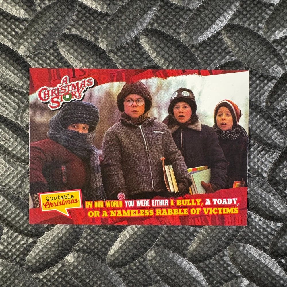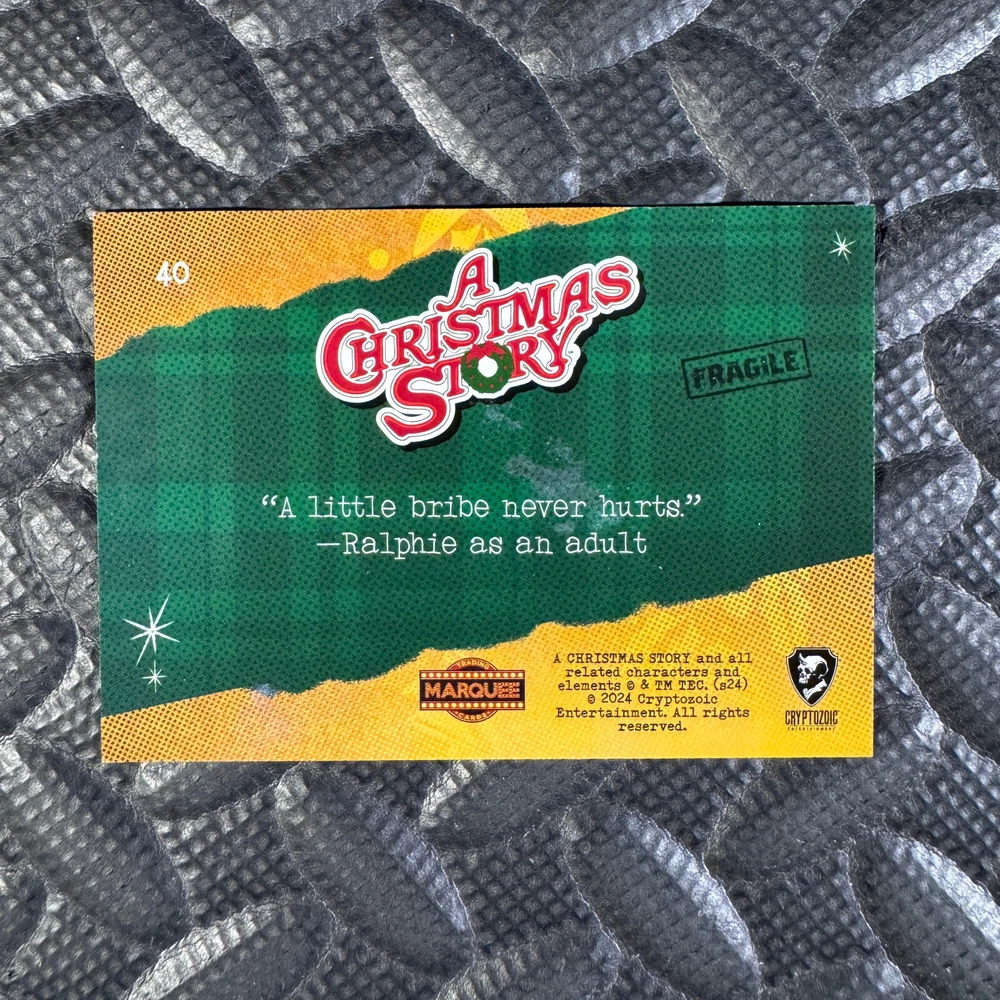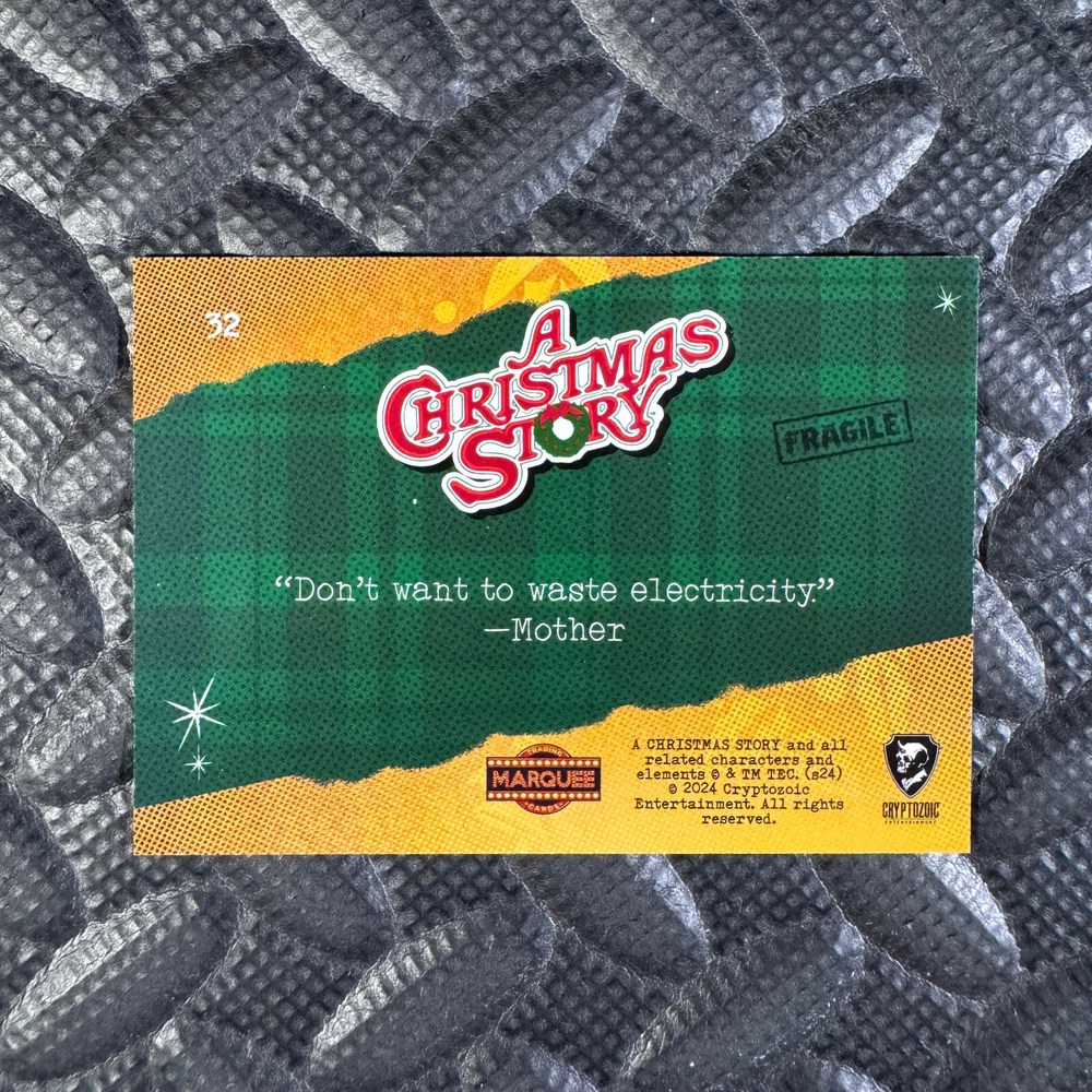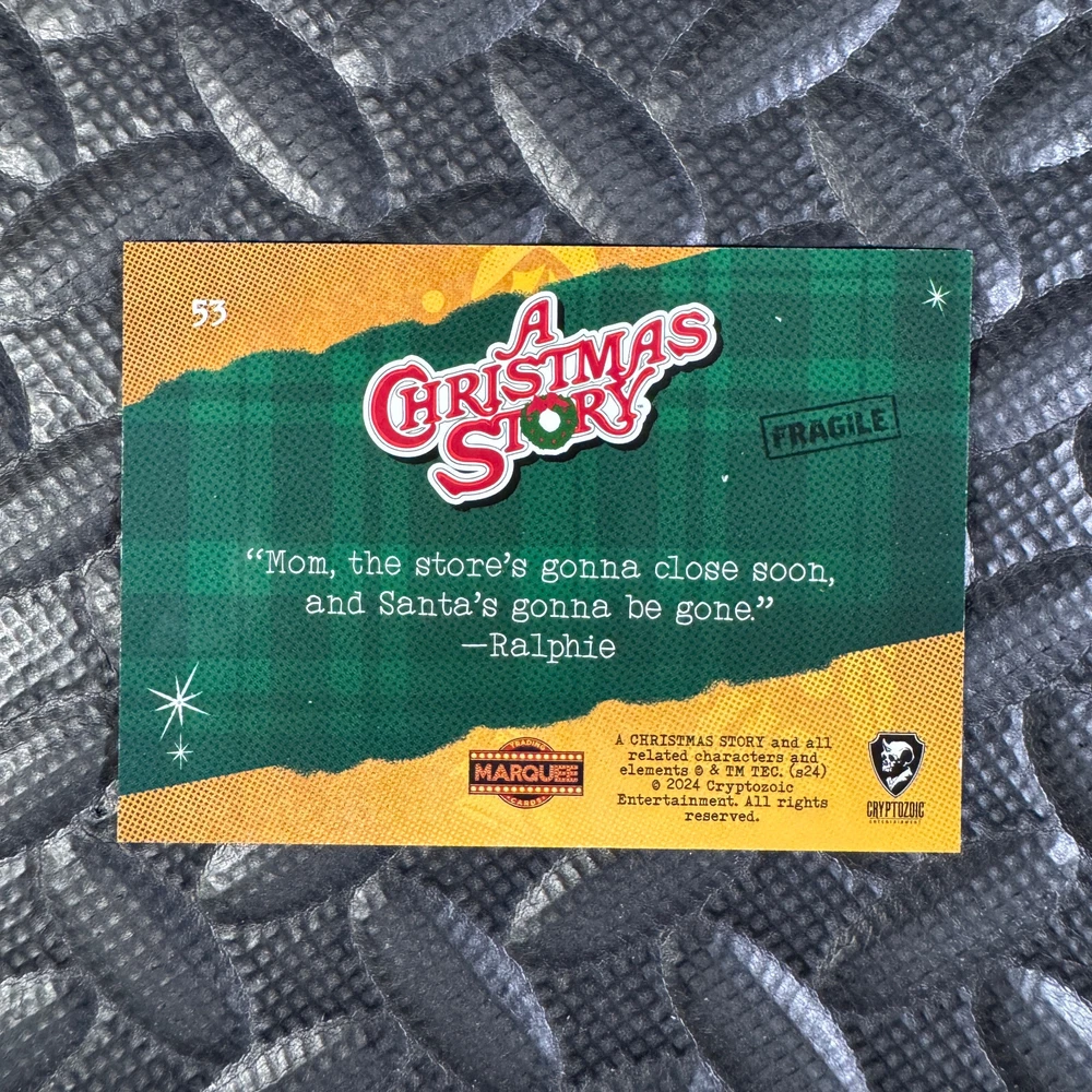 This listing is for your choice of any available 2024 Cryptozoic A Christmas Story base or chase card from the drop-down menu above. Also offering an empty wrapper, and an empty box! (empty box will be shipped flat, in a large envelope) Photos show front and backside of each card, be sure to scroll sideways to view front and backside photos! Check out my other listings for more single parallels from this same set. Any questions? Please ask before buying. International "USPS First Class Mail" will not include a tracking number for this item, if you would like a tracking number please choose the "eBay International Standard Shipping" option when you check out. As with all of my "pick-a-card" listings, I will be shipping with "eBay Standard Envelope". The rules of this envelope state that it cannot be too thick, so please expect your order to be packaged as follows: 1 to 6 cards will be slid into a single sleeve, the sleeve will then be slid inside of a semi-rigid Card-Saver. 7 to 12 cards will be slid into a double sleeve, 13 to 18 cards into a triple sleeve, 19 to 24 cards into a quadruple sleeve(up to six cards per sleeve). The double, triple and quadruple sleeve shipping will not have the Card-Saver. If you buy more than 1 card and want it packaged with more than 1 Card-Saver(or 1 sleeve per card), I kindly ask that you contact me before purchasing to be sure that this is possible to have it done with the stated shipping charge, or if additional shipping would be required. If you do not contact me, then you can expect to receive your order packaged as I have explained here. Please do not expect rigid top-loaders to be included, I don't normally keep a lot of them in stock, but if you message me prior to ordering I will be able to see if I have any that can be included with your order - additional shipping may be required. In order to get free combined shipping from this and any of my other "pick-a-card" listings, you must add all of your cards to the cart and check out when you are done shopping. If you do not use the cart you will be overpaying on shipping and I cannot refund you on over-payed shipping. So please use the cart and get your FREE COMBINED SHIPPING!